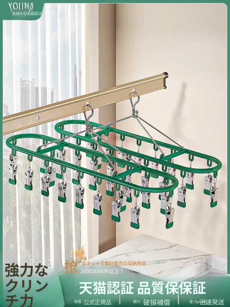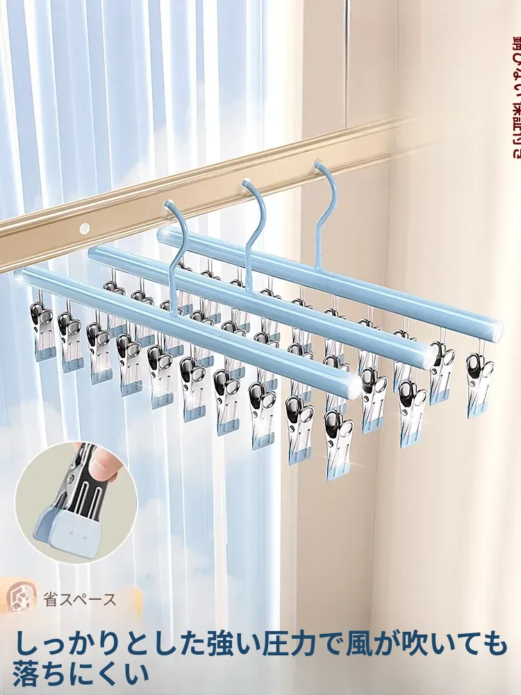 多機能ステンレス製靴下干しラック - バルコニーに最適!洗濯物をしっかりと固定できるクリップ付きで、靴下や下着を効率よく乾かせます。お家の洗濯がもっと楽しくなる便利アイテム!