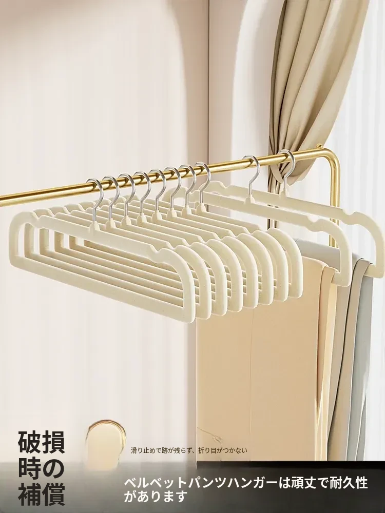 無痕フロッキー製パンツハンガー 滑り止め機能付き 肩に優しい衣類収納の必需品!スペースを節約し、季節ごとの衣類整理を簡単に。多機能で使いやすく、クローゼットをすっきり整理!