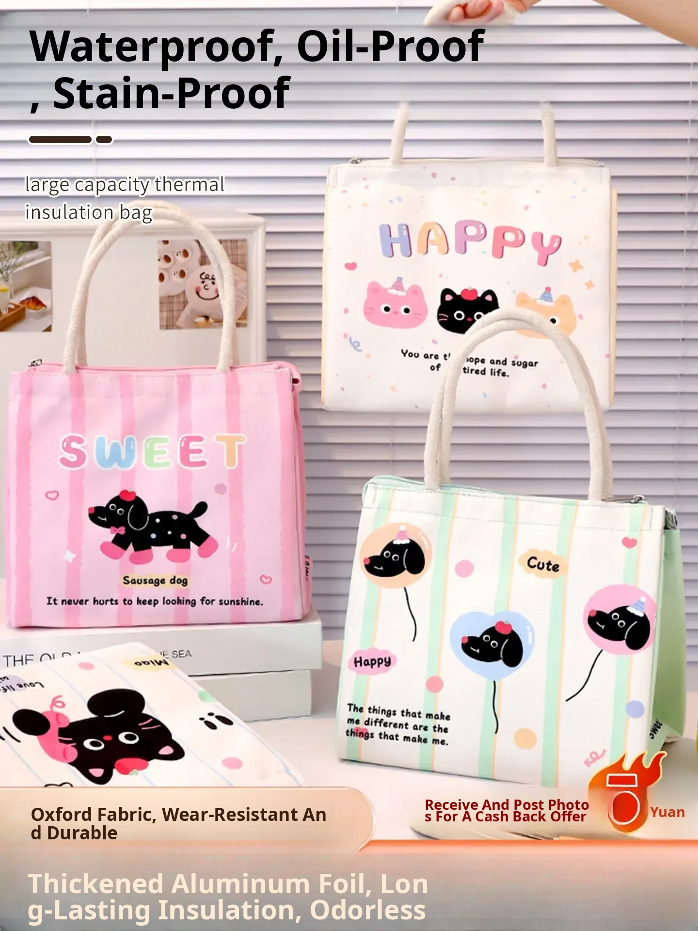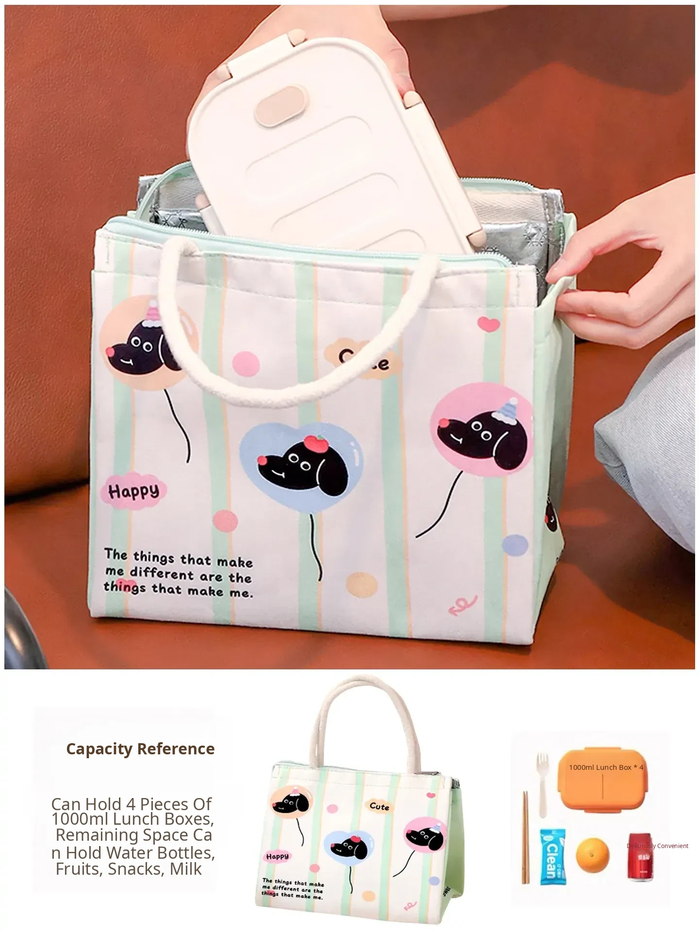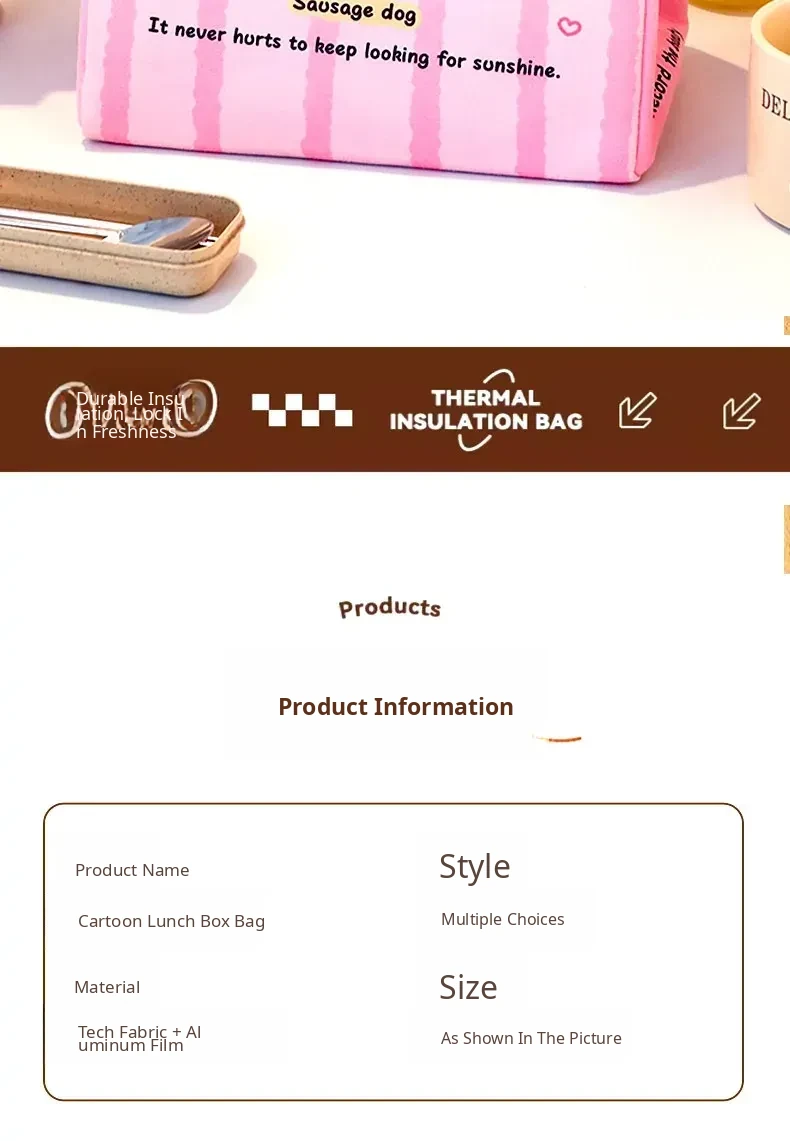 Cartoon Bento Bag for Kids - Stylish Lunch Box Tote for Students and Office Workers, Perfect for Packing Meals and Enjoying Breakfast & Lunch On-the-Go!