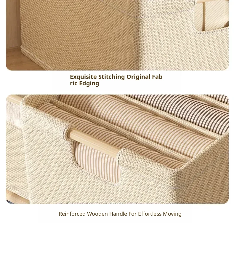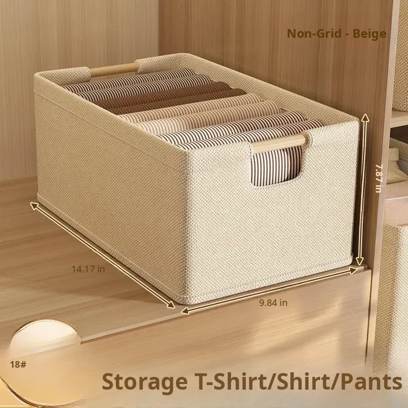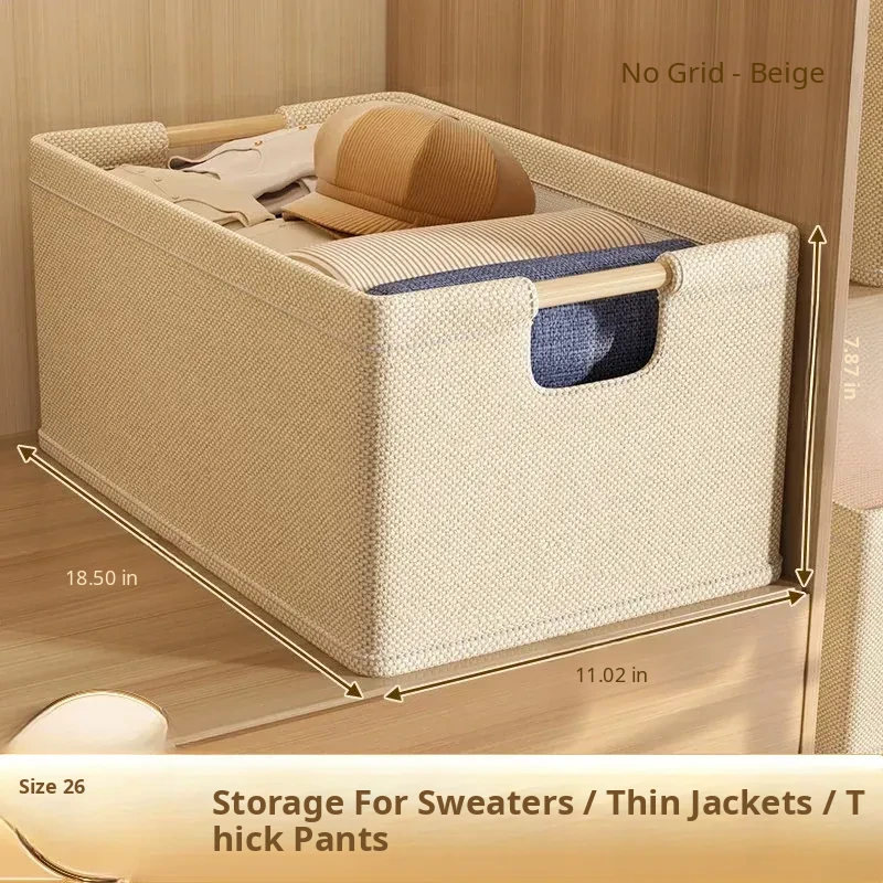 No Grids❤Large Beige Wooden Handle [Upgraded Tianshan Cotton and Linen Texture/Hard Bottom/Washable Without Odor]