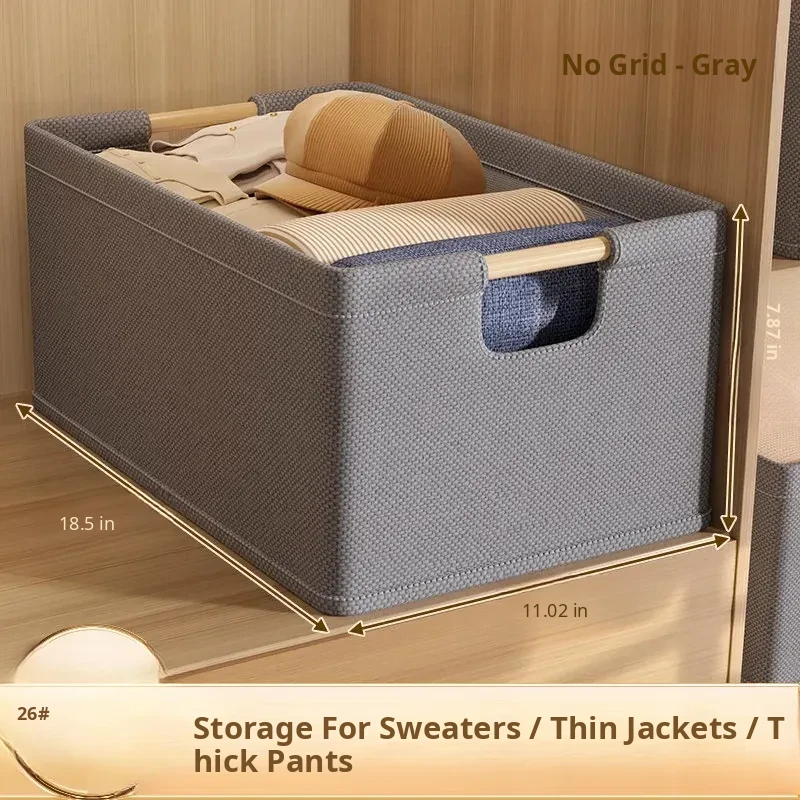 No Grids❤Large Gray Wooden Handle [Upgraded Tianshan Cotton and Linen Texture/Hard Bottom/Washable Without Odor]