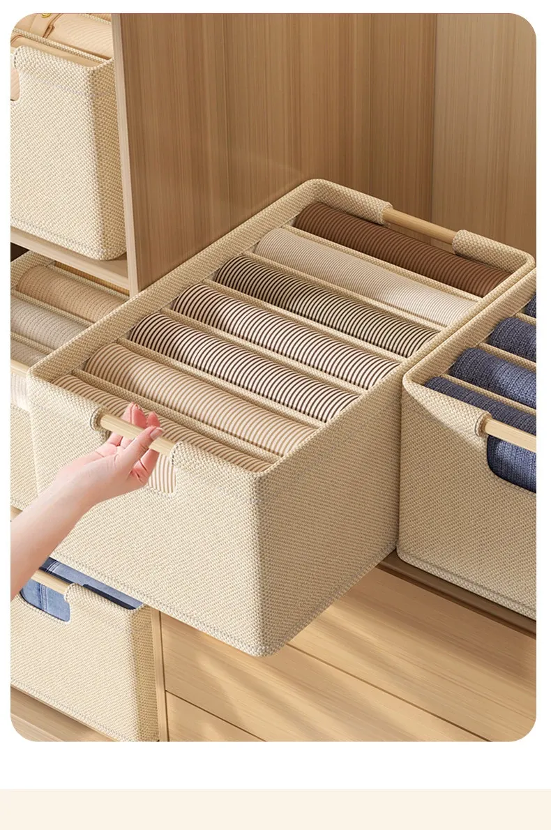7 Grids❣️Beige Wooden Handle [Upgraded Tianshan Cotton and Linen Texture/No Hard Board at the Bottom/Washable Without Odor]