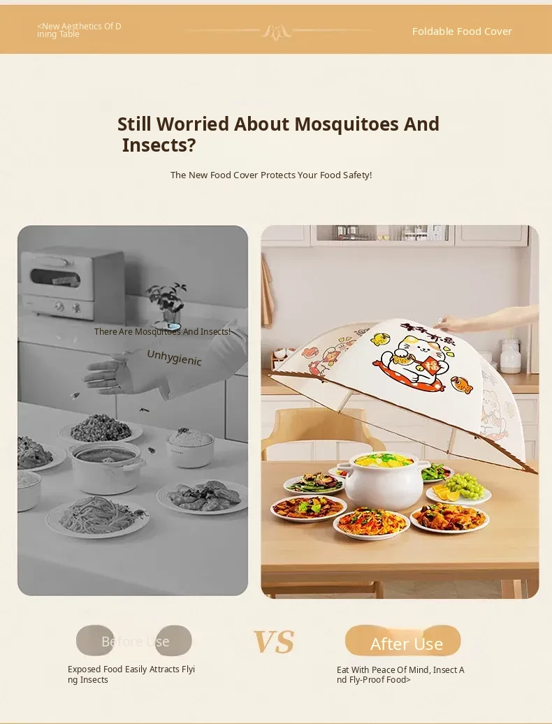 Foldable Food Cover - Kitchen Dust and Fly Shield for Leftovers, Effective Food Protector, Perfect for Dining Tables, Keeps Your Meals Fresh and Clean!