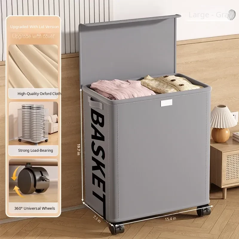 Modern Gray - Medium [with Lid] Skin-Friendly Fabric / Extra Large Capacity / Reinforced Steel Frame