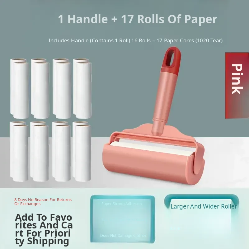 Pink 6.30in Handle + 17 Rolls of Paper [1020 Tears in Total]
