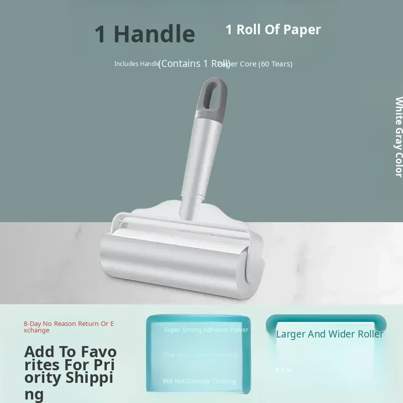 White and Gray 6.30in Handle + 1 Roll of Paper [60 Tears in Total]