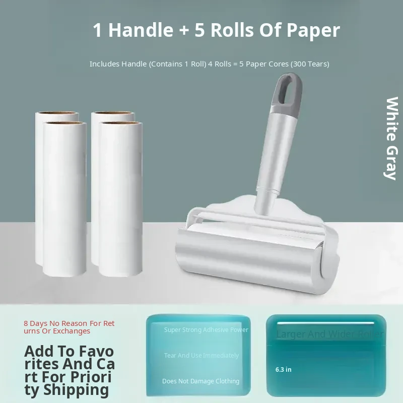 White and Gray 6.30in Handle + 5 Rolls of Paper [300 Tears in Total]