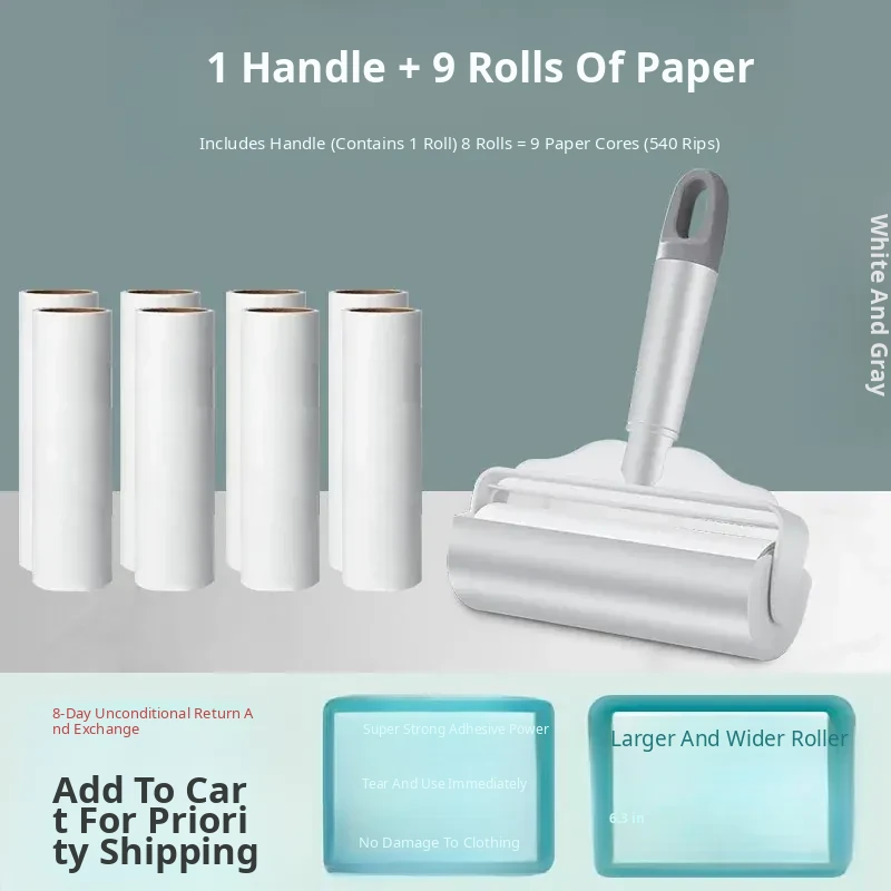 White and Gray 6.30in Handle + 9 Rolls of Paper [540 Tears in Total]