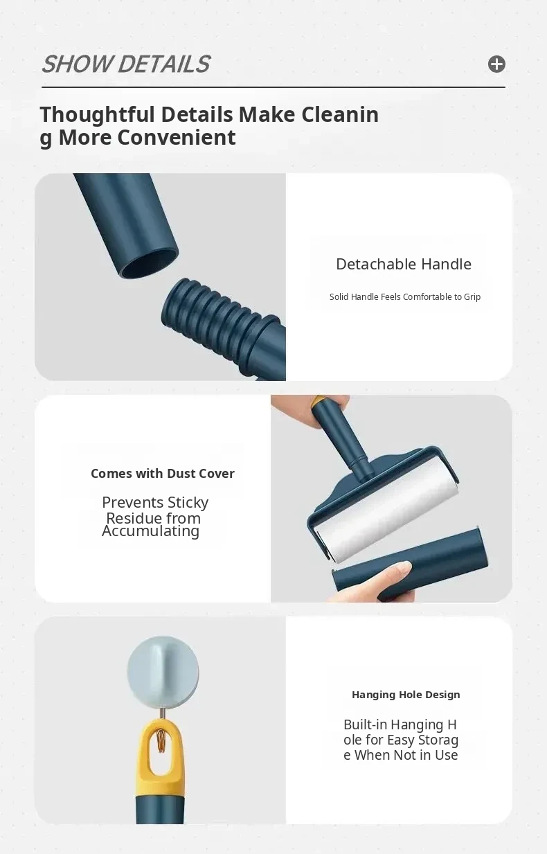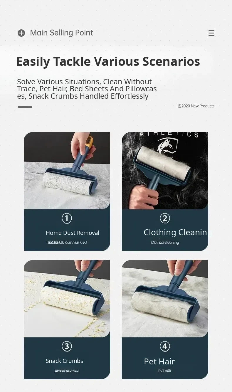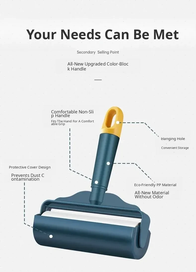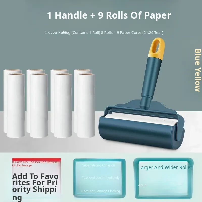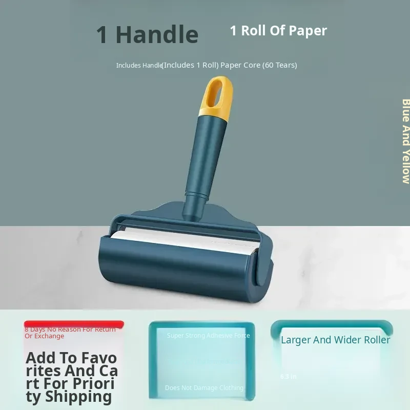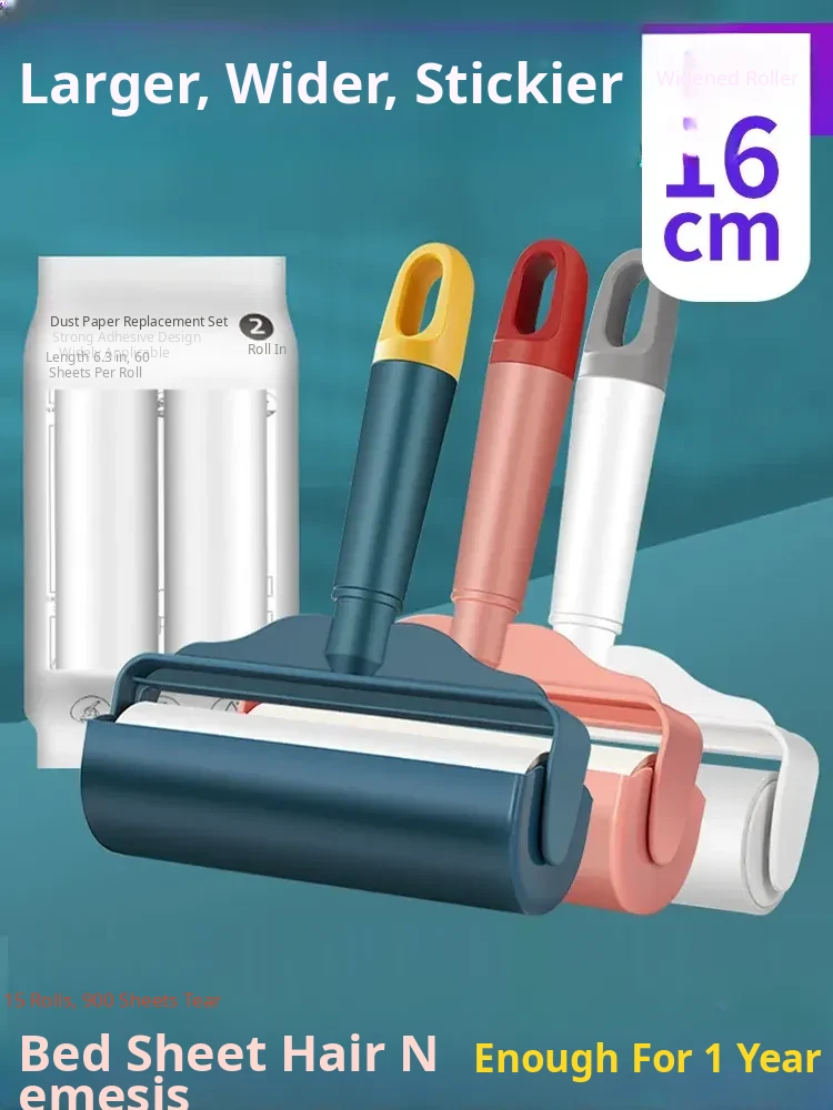 Powerful Hair Removal Roller Brush - Magic Lint Roller for Effortless Cleaning of Pet Hair on Beds and Floors, with Tearable Adhesive Sheets