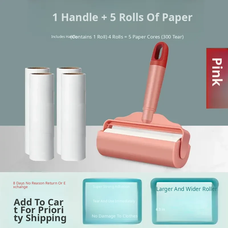Pink 6.30in Handle + 5 Rolls of Paper [300 Tears in Total]
