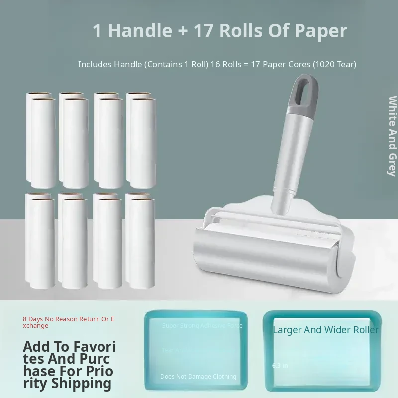 White and Gray 6.30in Handle + 17 Rolls of Paper [1020 Tears in Total]