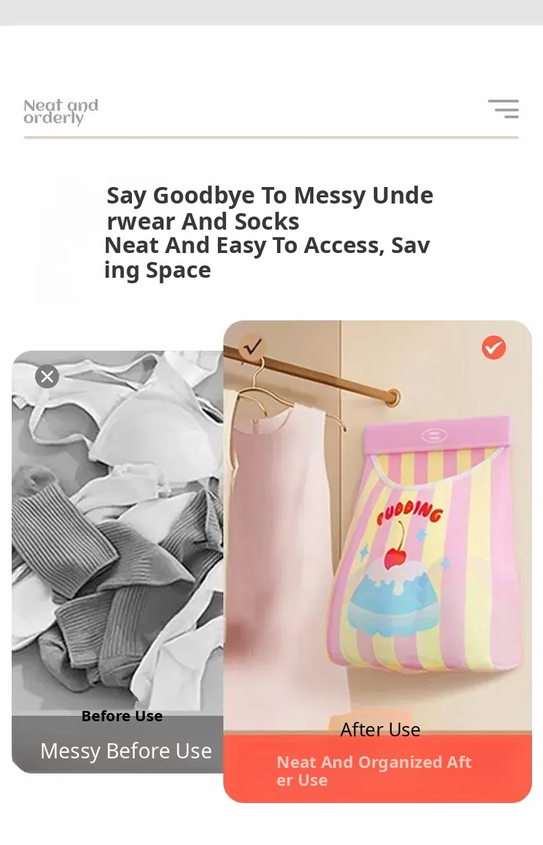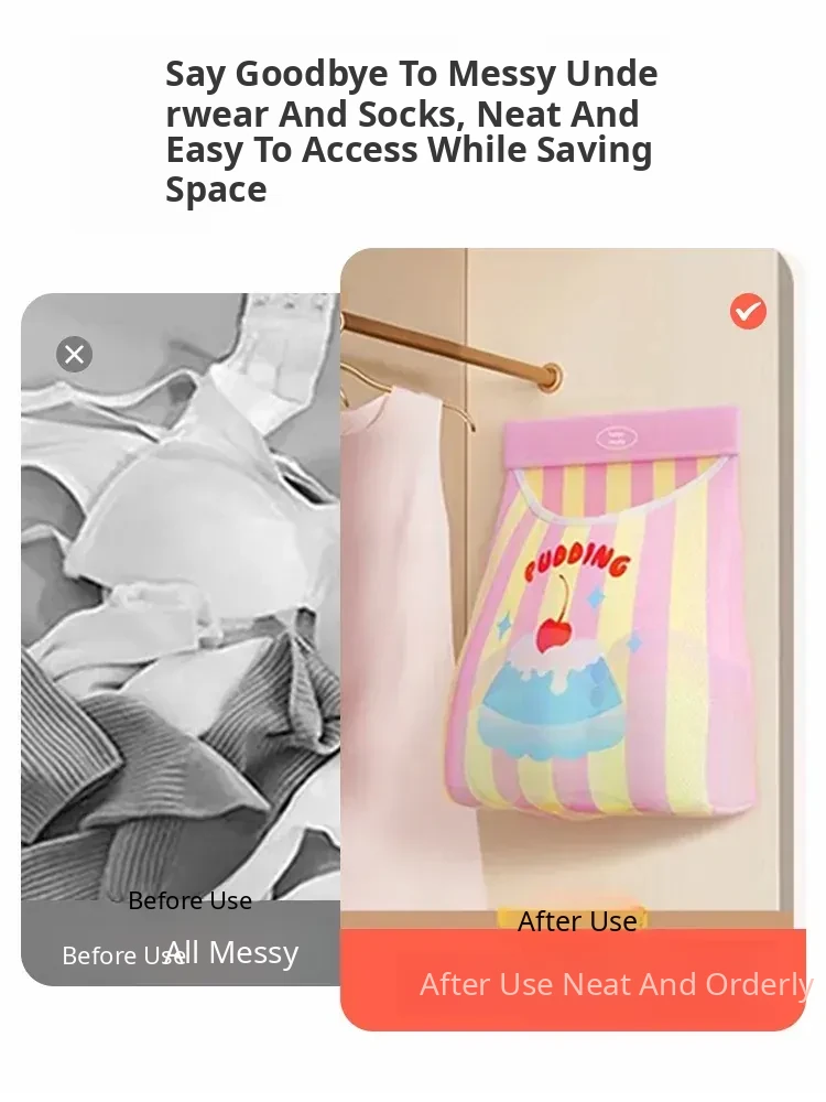 Socks Organizer for Dorms - Double-Sided Hanging Storage Bag for Underwear and Panties, Perfect for Closet Doors and Maximizing Space with Mesh Pocket Design