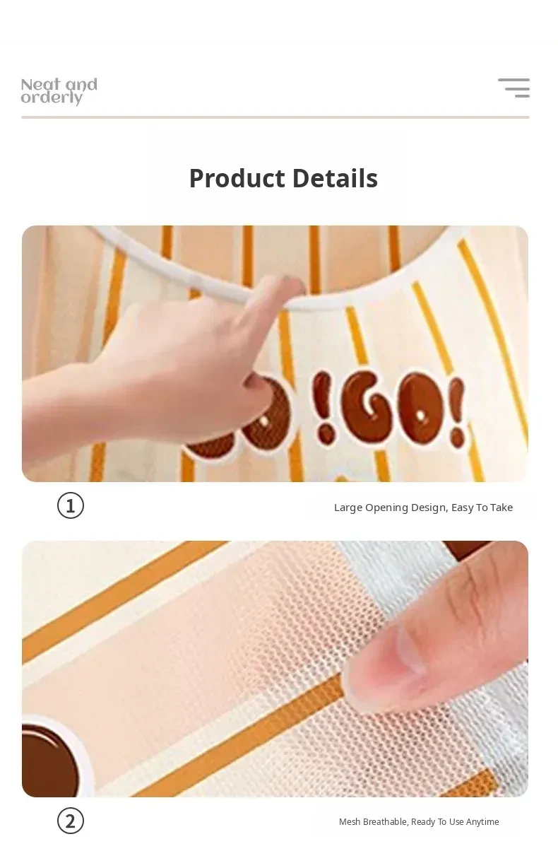 Vibrant Orange [Pack of 2] Mesh Bag Style⭐Velcro Storage Bag