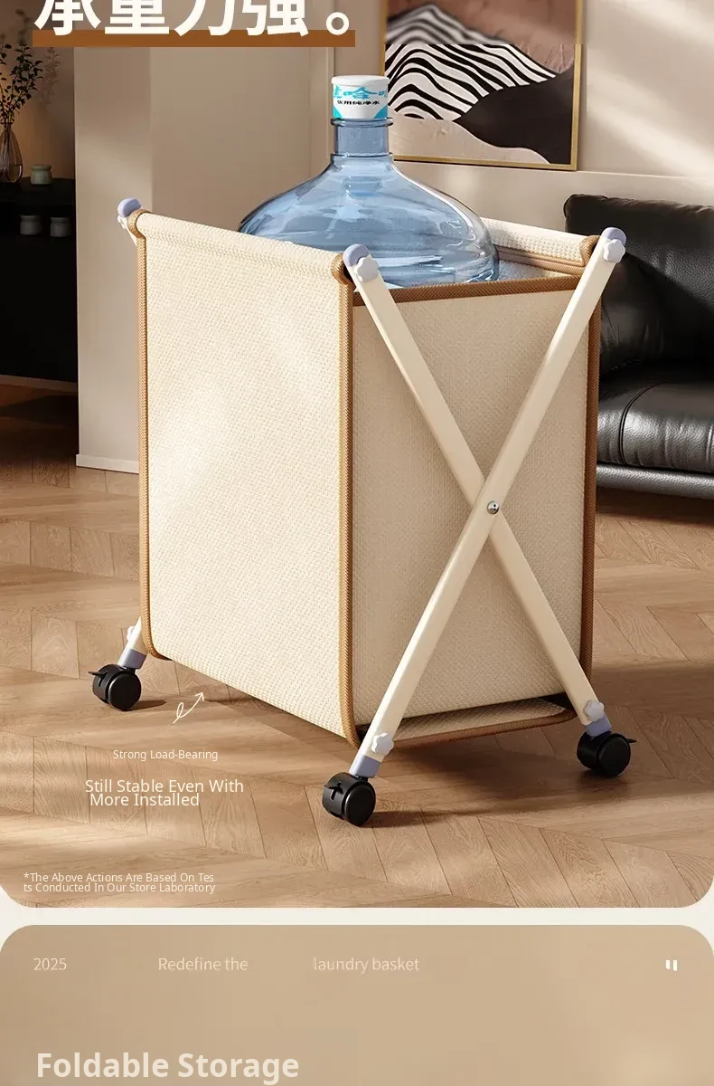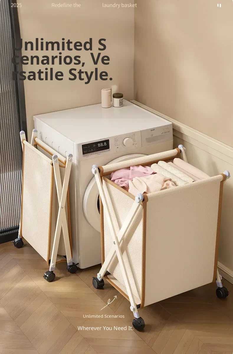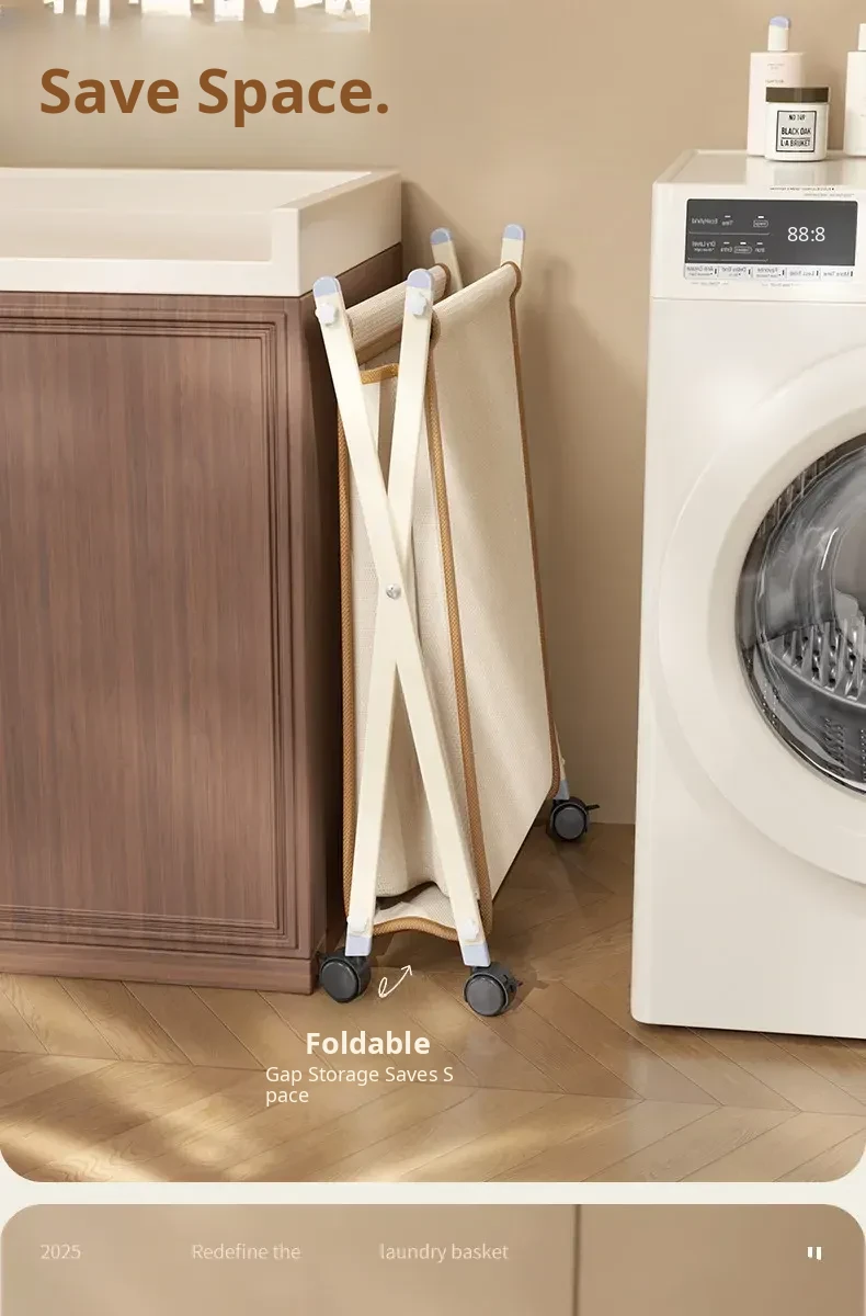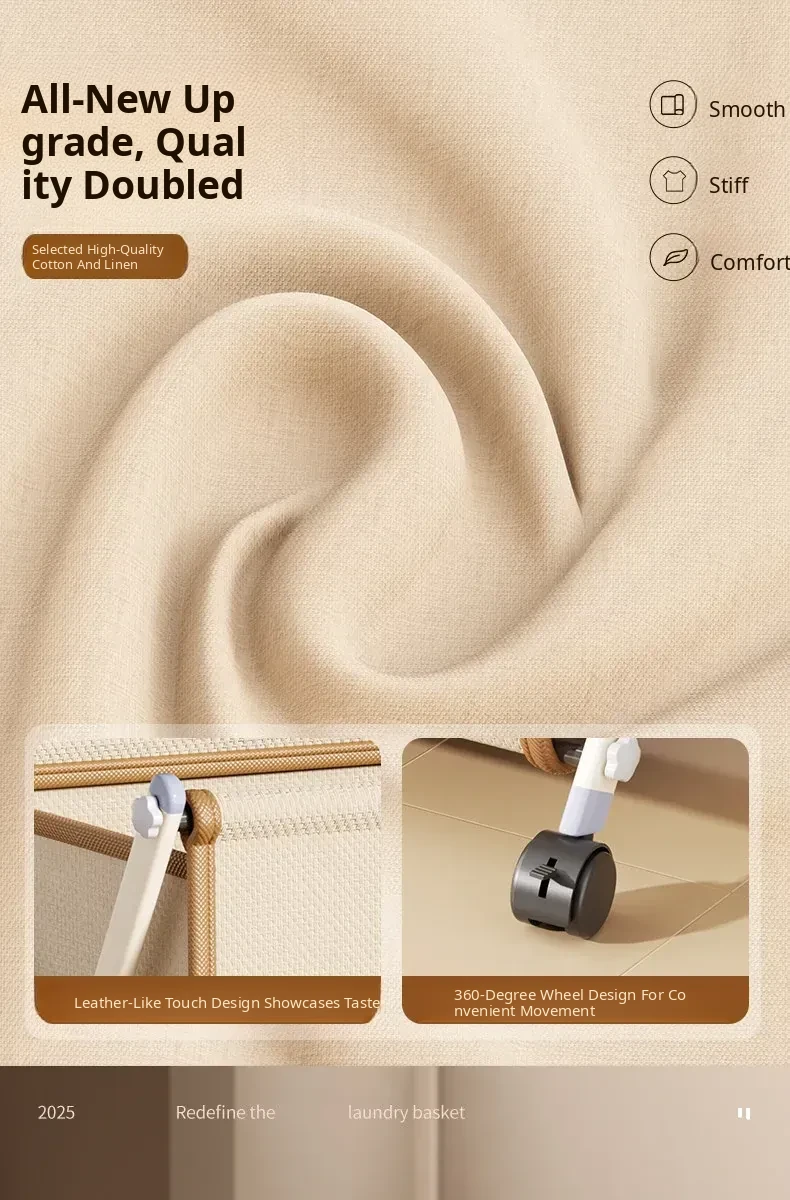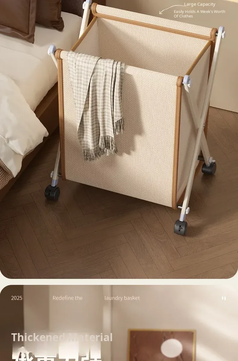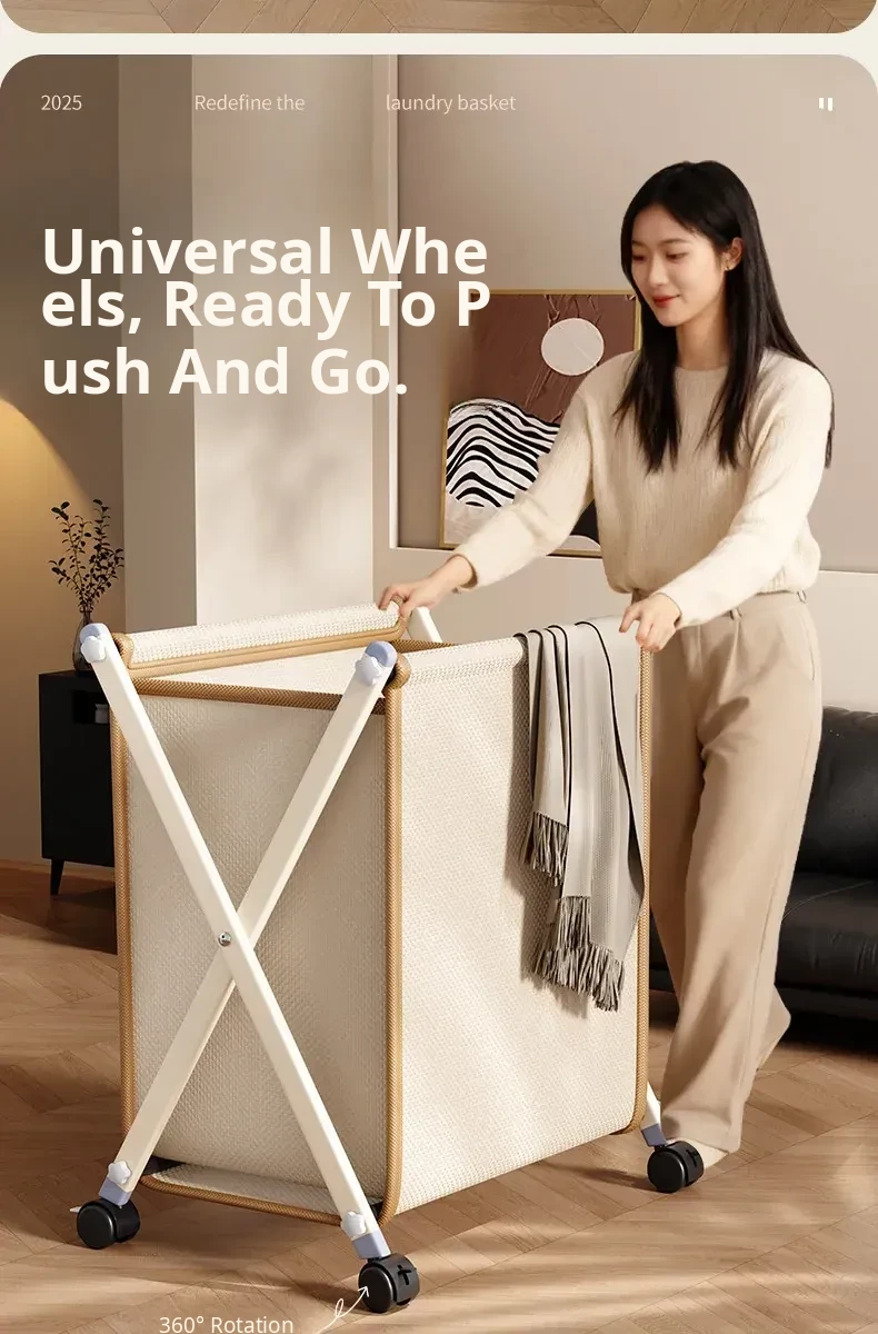 Light Luxury White-Leather Dirty Clothes Basket [Swivel Wheel⭐Matte Iron Finish⭐Minimalist Luxury Goods]