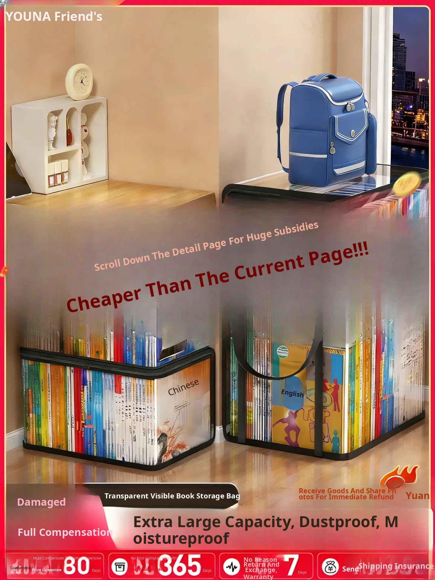 Foldable Transparent Dust-Proof Book Storage Bag - Large Capacity Organizer for Students' Dorms, Perfect for Keeping Books Neat and Tidy!
