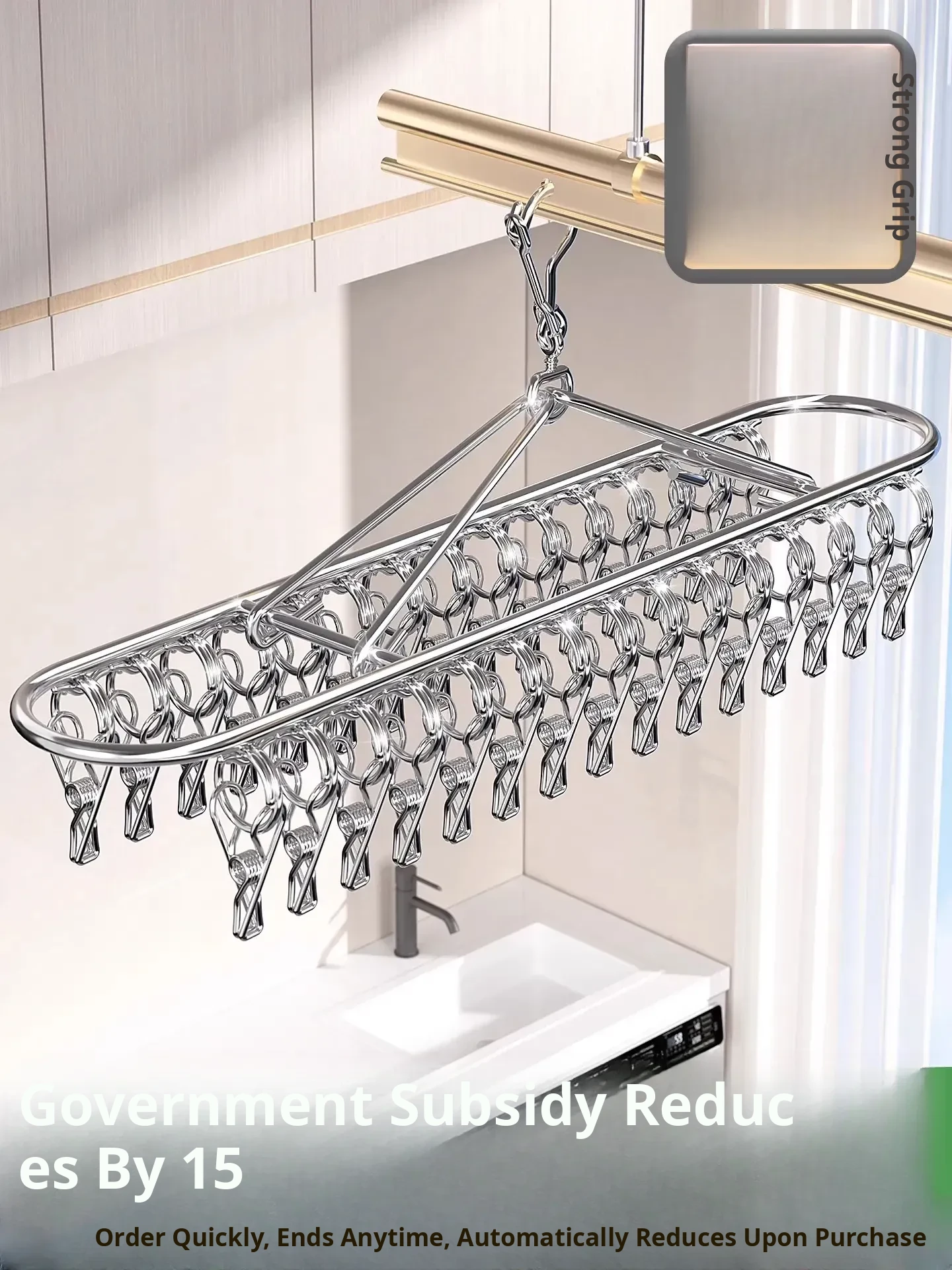 Stainless Steel Sock Drying Rack - Multi-Clip Balcony Clothes Hanger, Versatile Underwear and Sock Drying Solution, Perfect for Indoor and Outdoor Use!