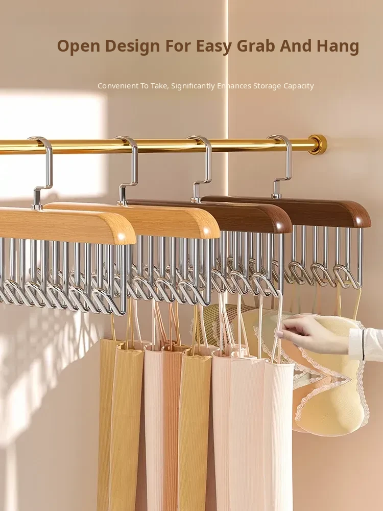Multi-Functional Wooden Hangers with Wave Hooks – Versatile Clothes Rack for Home and Dorms, Ideal for Vests and Lingerie, Durable Solid Wood Storage Solution