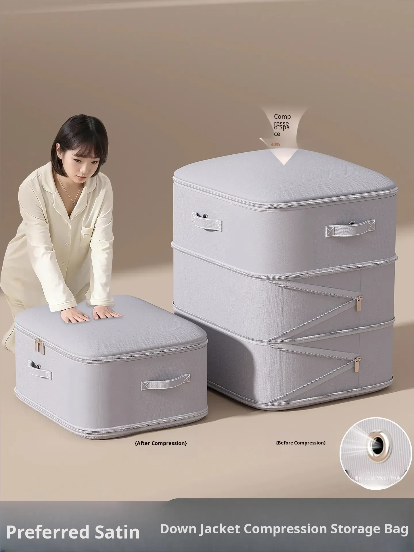 Japanese Comforter Storage Bag - Large Capacity Compression Bag for Down Jackets and Bedding, Perfect for Closet Organization and Space Saving