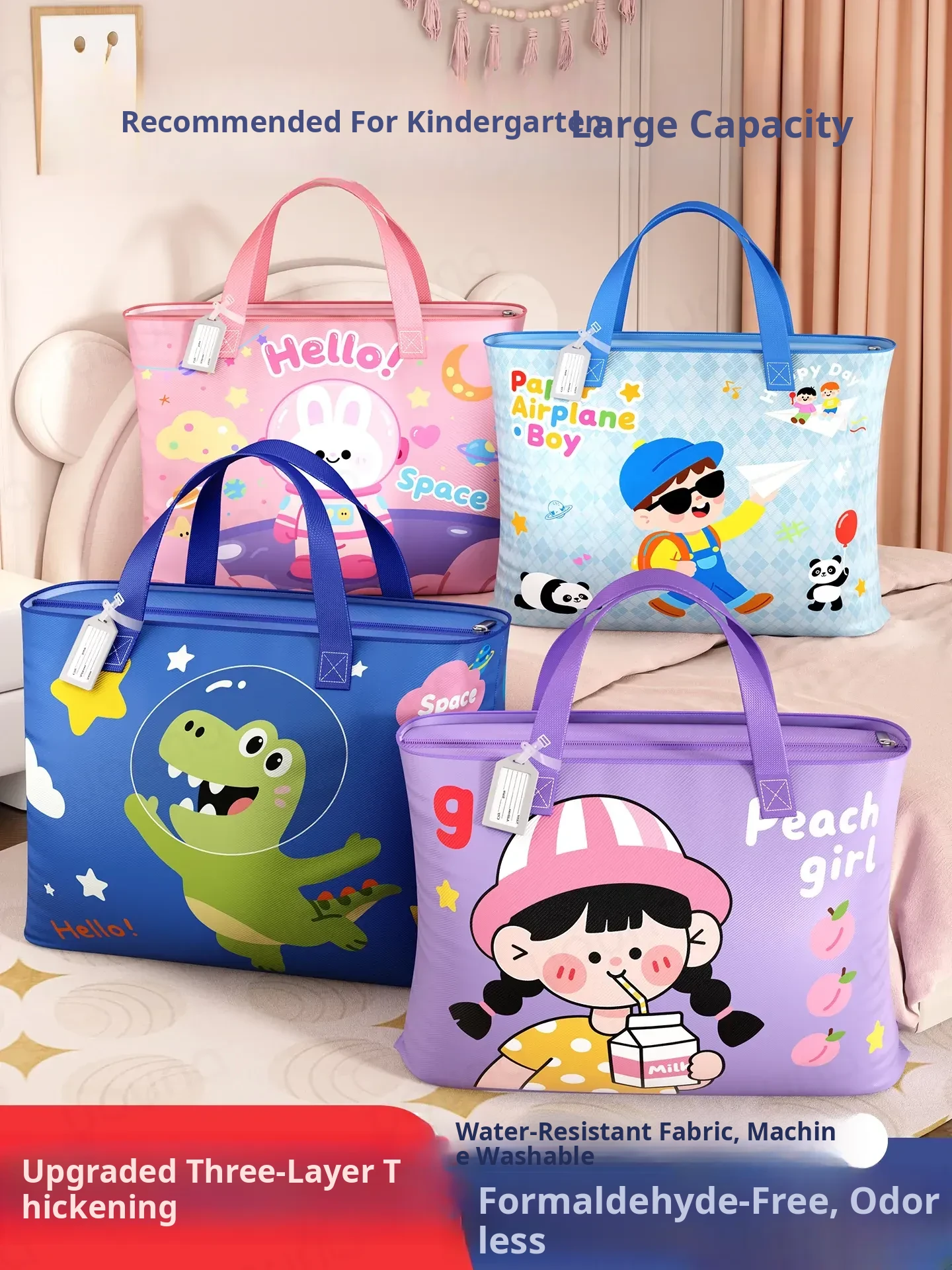 Waterproof and Moisture-Proof Kindergarten Storage Bag for Kids - Portable Tote for Organizing Clothes, Quilts, and Luggage for School. Perfect for Keeping Your Child's Belongings Neat and Dry!