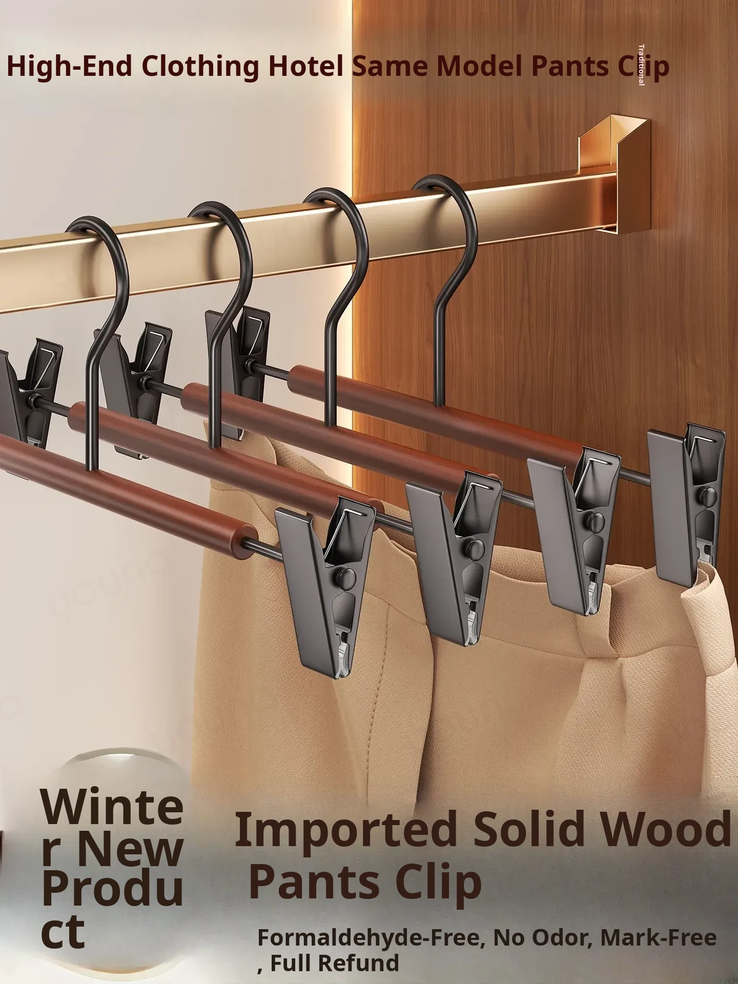 2026 New Beech Wood and Iron Pants Hanger - No-Slip, Non-Marking Clothes Hanger for Home and Clothing Stores - Perfect for Hanging Pants and Skirts