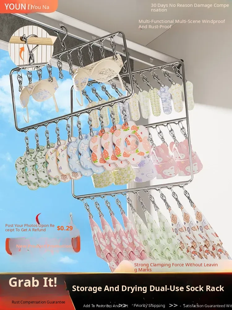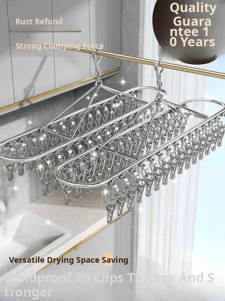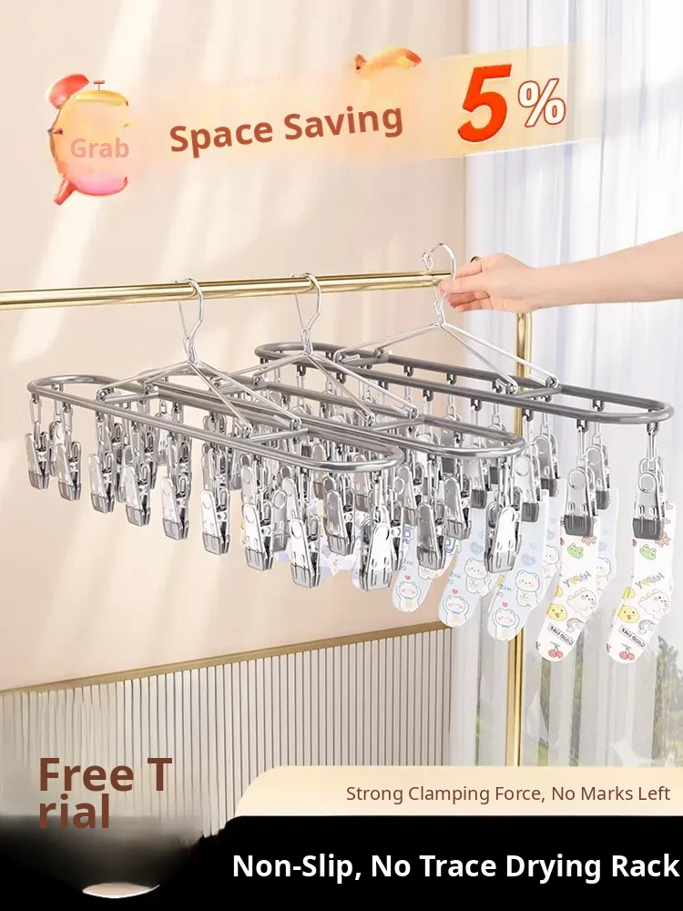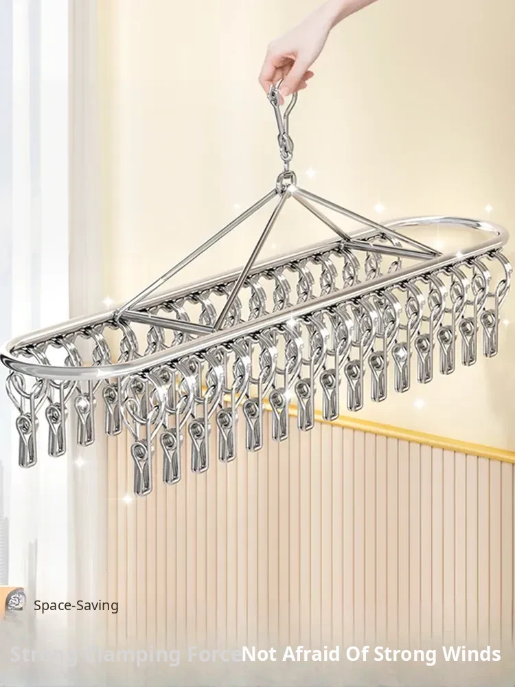 Stainless Steel Sock Drying Rack - Multifunctional Clothes Hanger with Multiple Clips for Home Use, Ideal for Underwear and Pants, Windproof Solution for Bathrooms