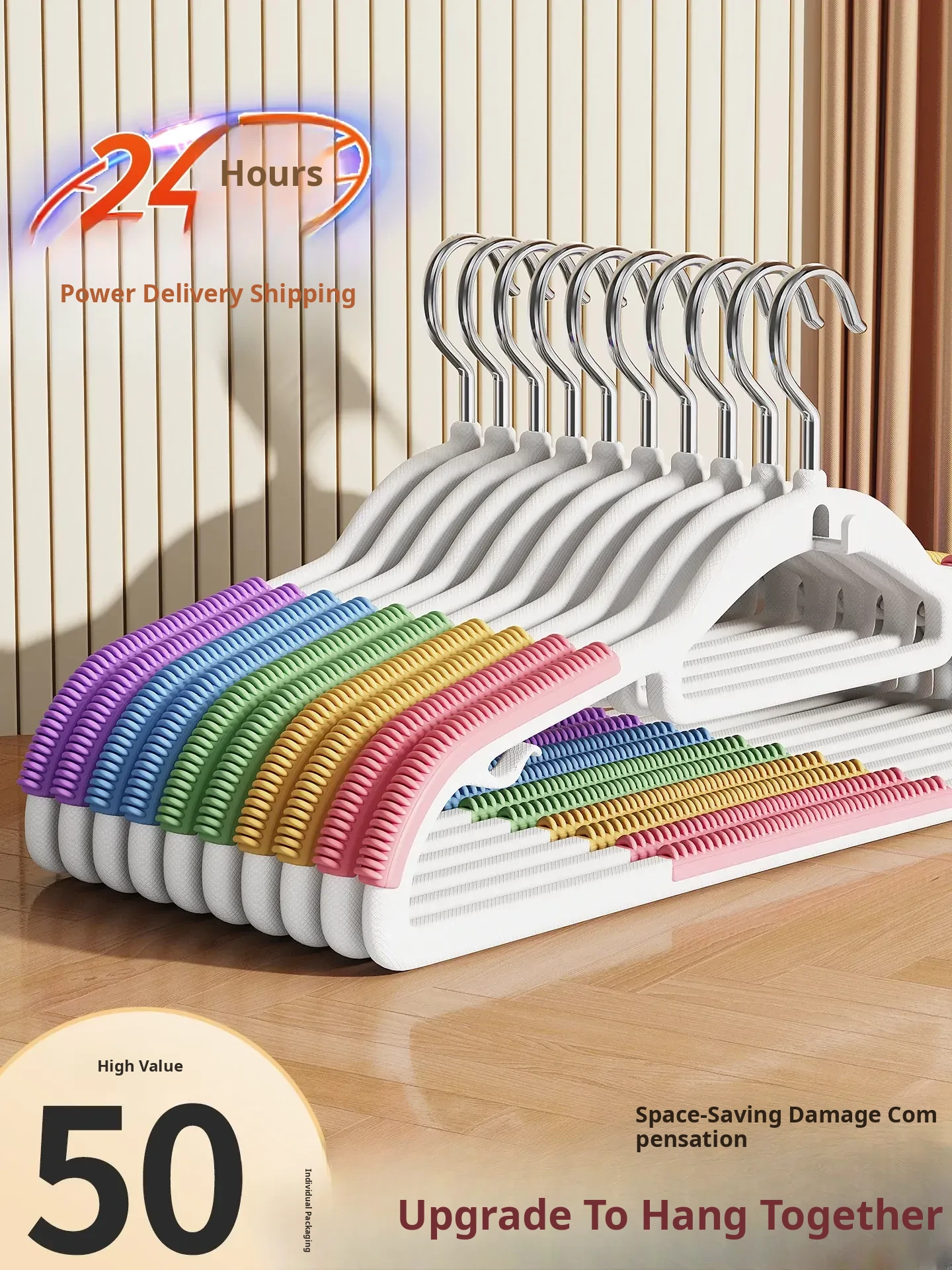 Rainbow Non-Slip Thickened Clothes Hangers for Home and Dorm Use – 2025 New Design, No Trace, Perfect for Students and Hanging Clothes Securely.