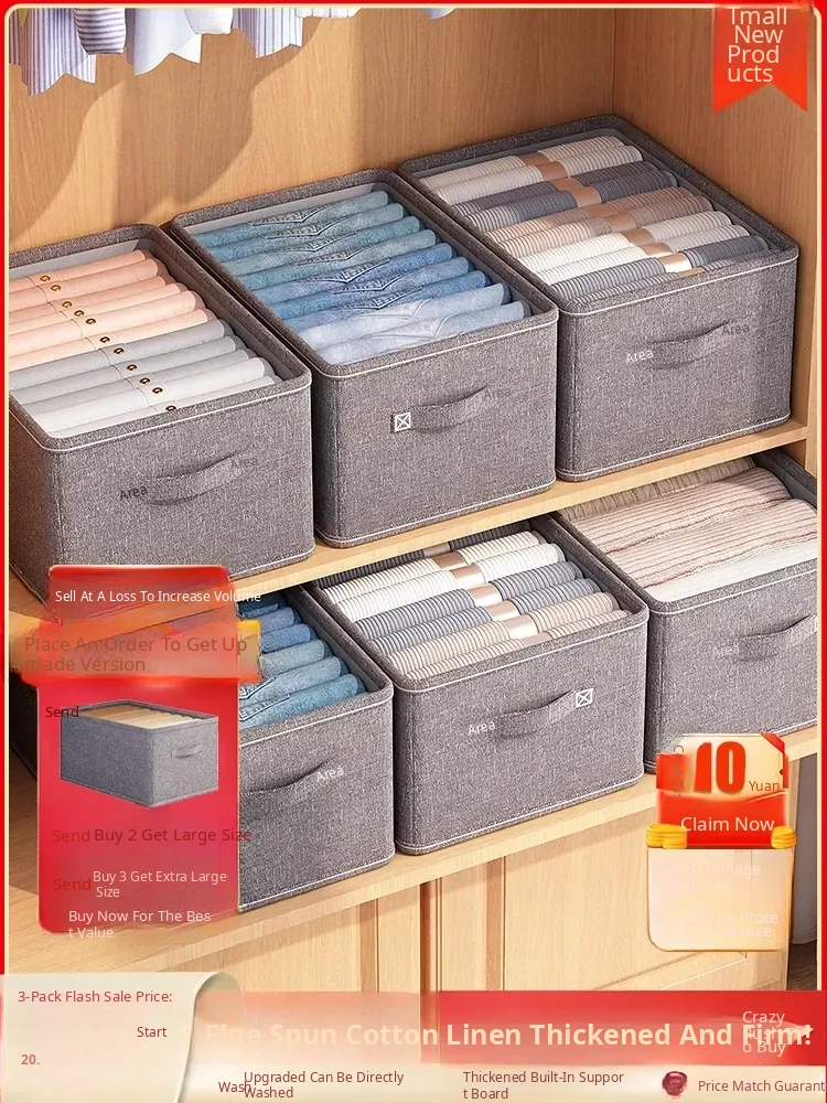 Home Cotton Linen Clothing Storage Box - Multi-Layer Foldable Organizer for Clothes and Pants, Perfect for Closet Organization and Decluttering!
