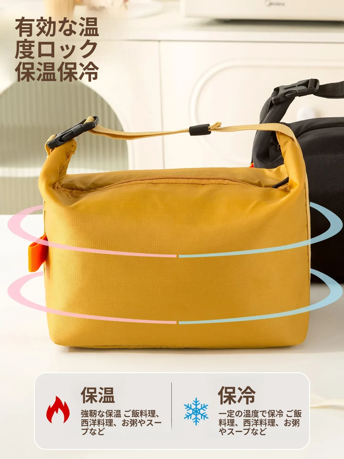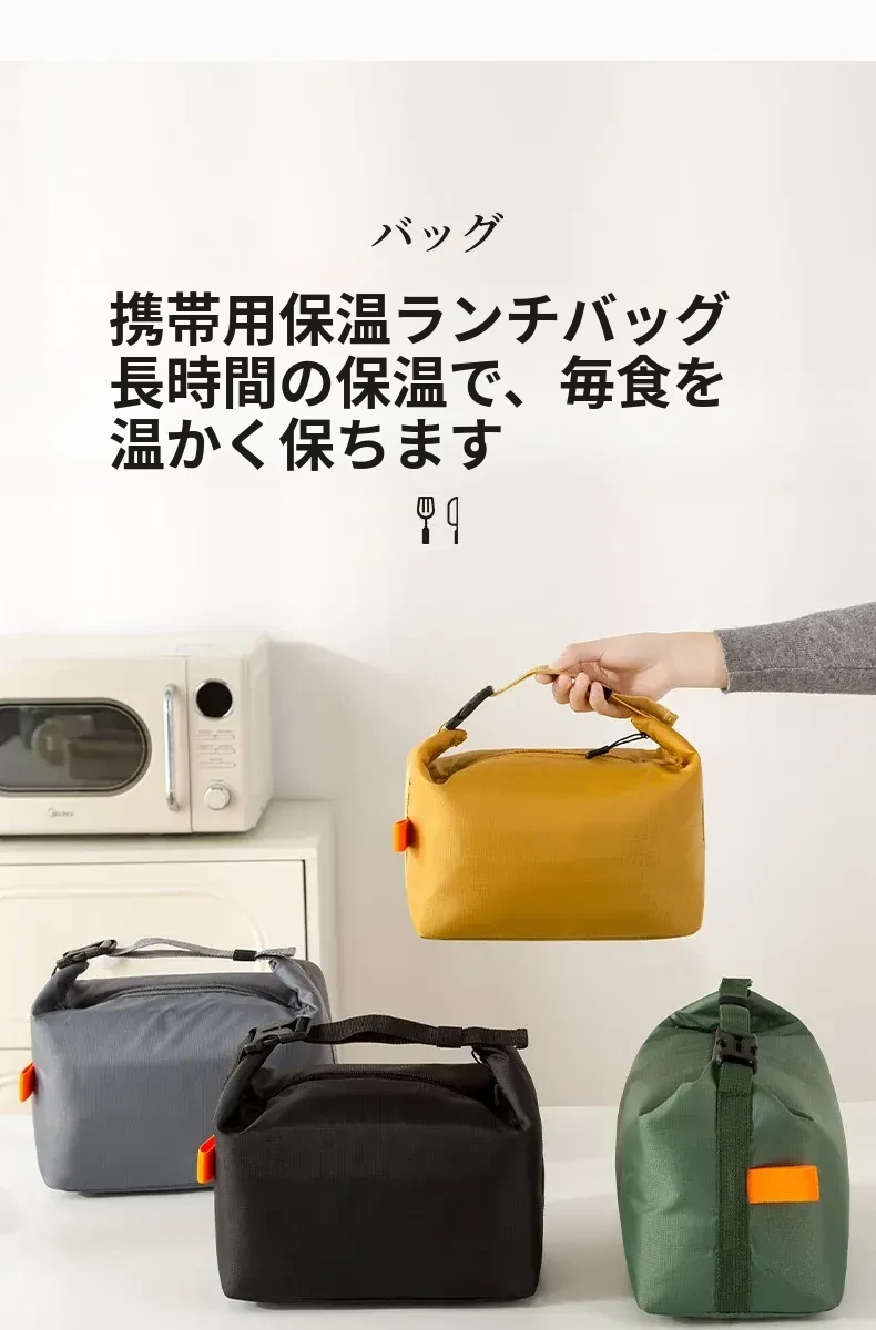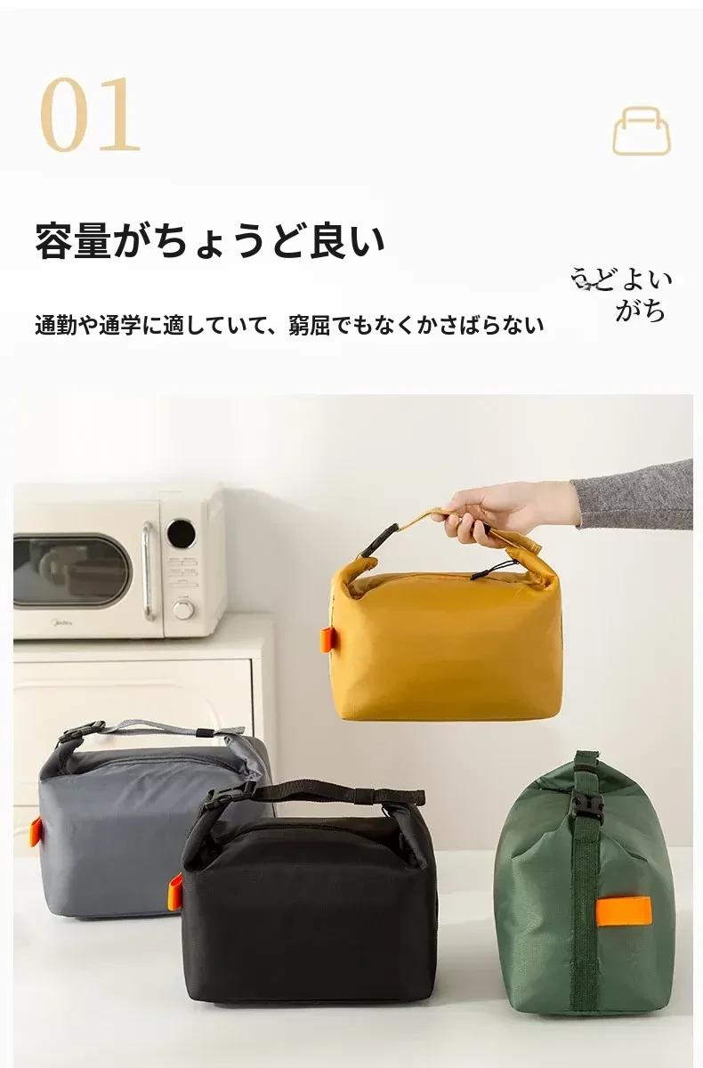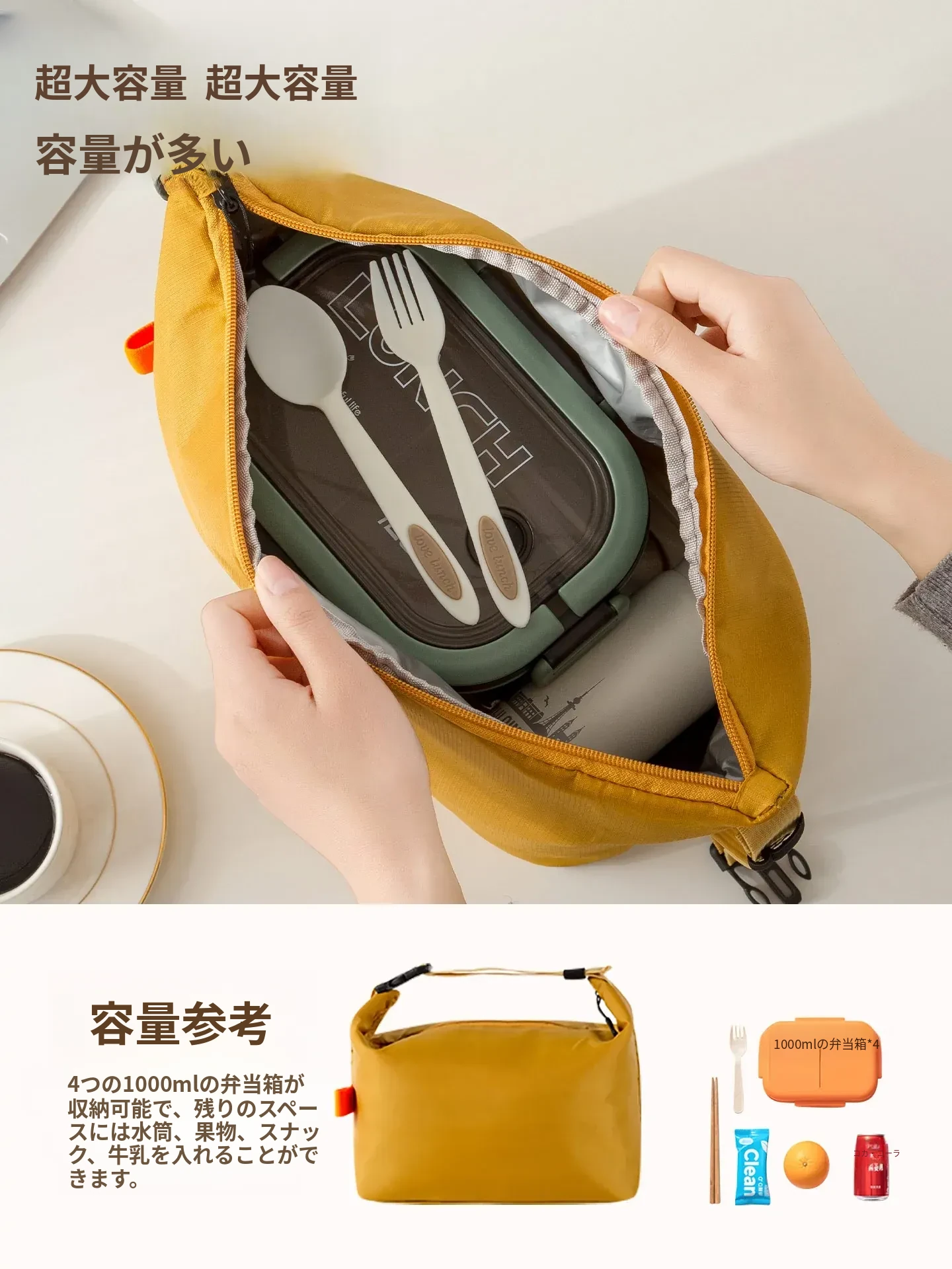日本スタイルのランチバッグ - 持ち運び便利で保温効果抜群!大容量で学生や働く人に最適な弁当箱バッグ。おしゃれで実用的、ランチタイムをもっと楽しく!