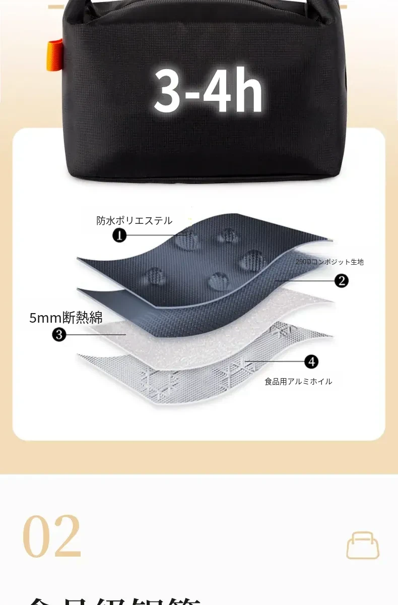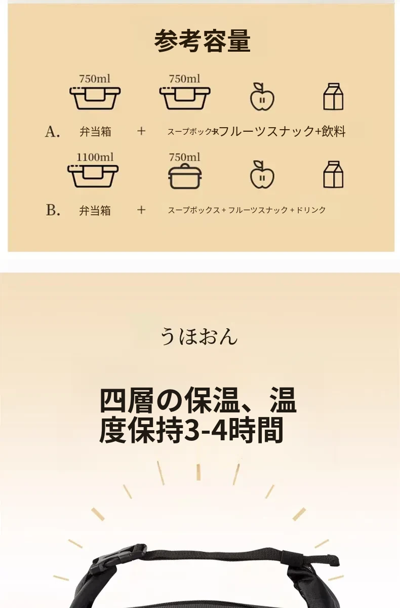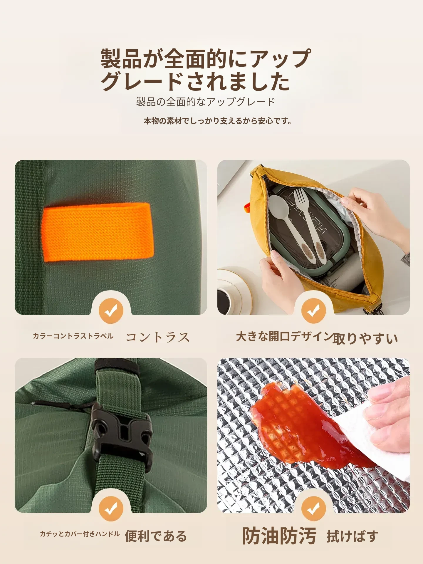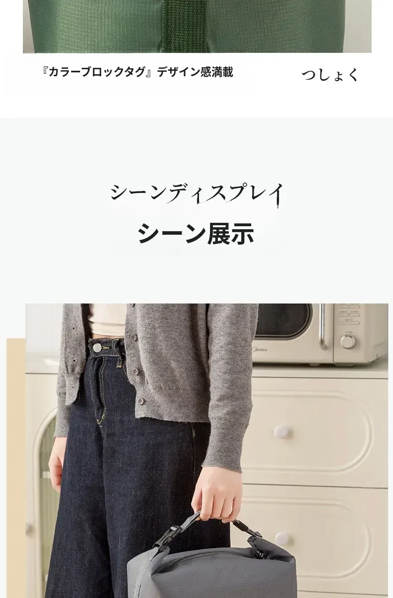日本スタイルのランチバッグ - 持ち運び便利で保温効果抜群!大容量で学生や働く人に最適な弁当箱バッグ。おしゃれで実用的、ランチタイムをもっと楽しく!