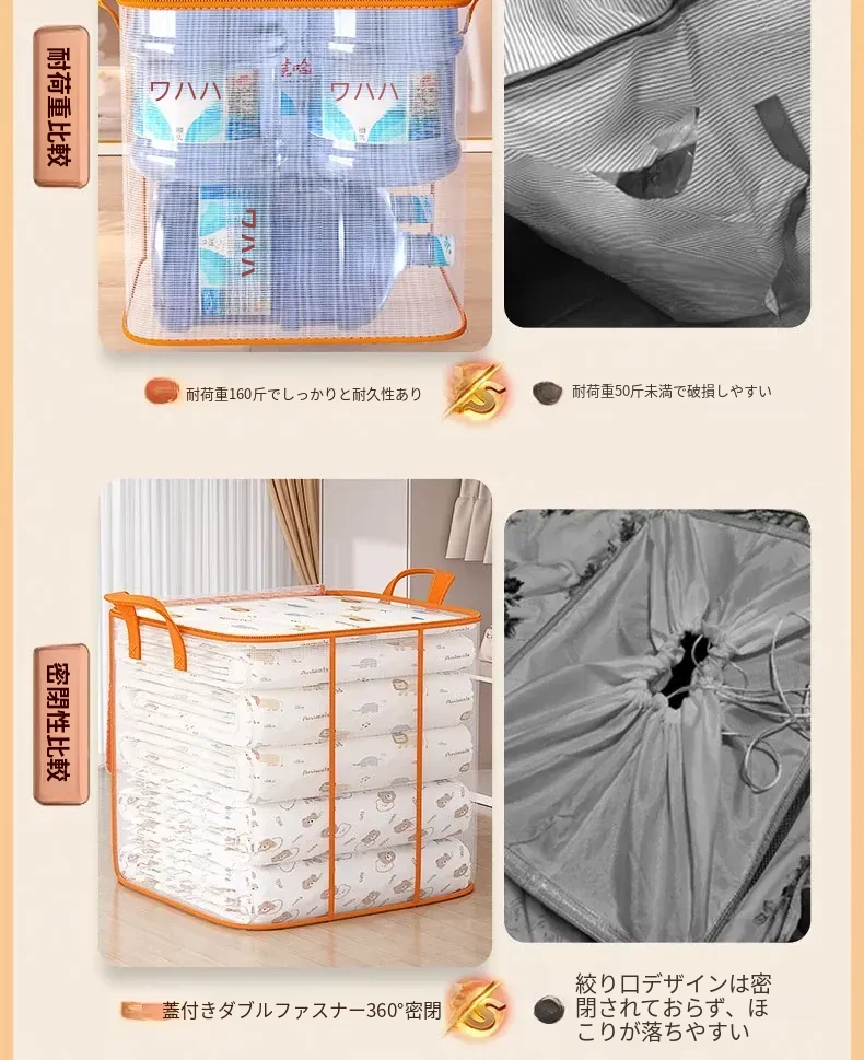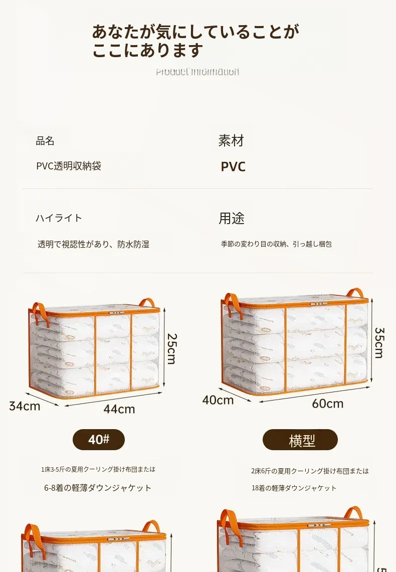 透明大容量収納バッグ - 季節の衣替えや引越しに最適!羽毛布団や衣類をすっきり整理できる便利アイテム!