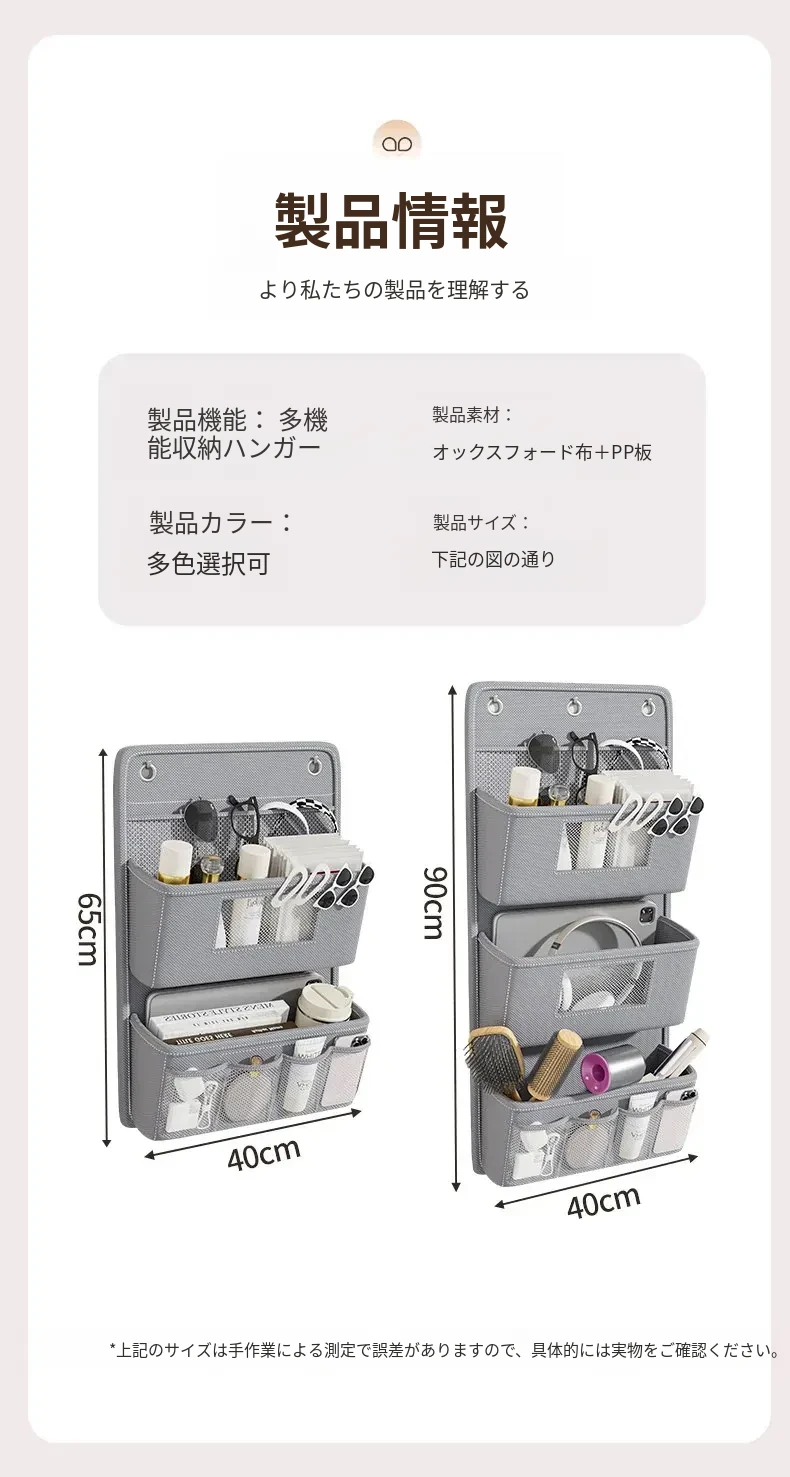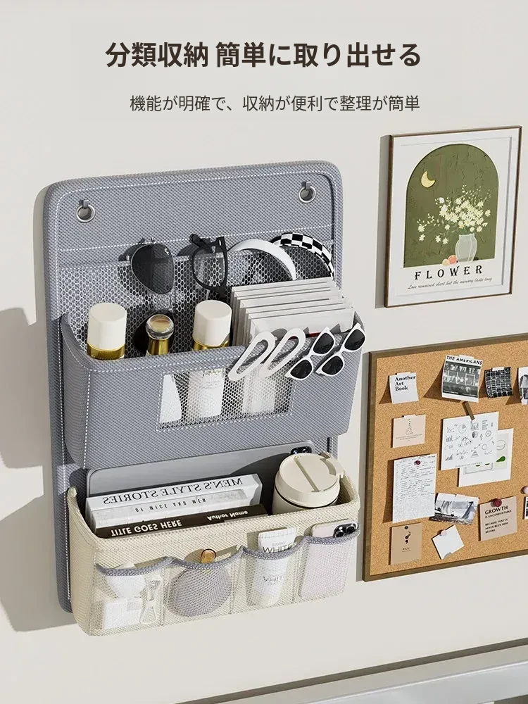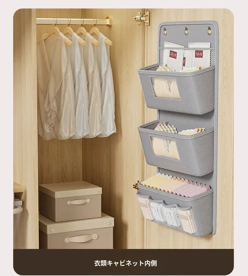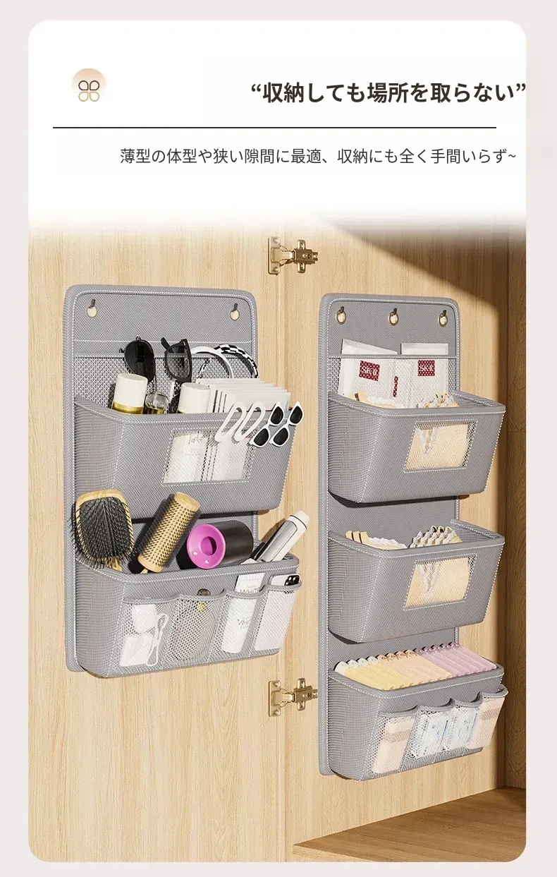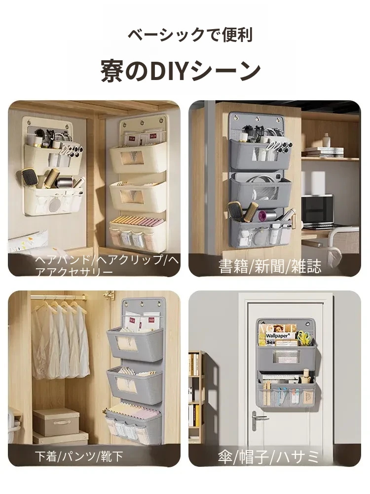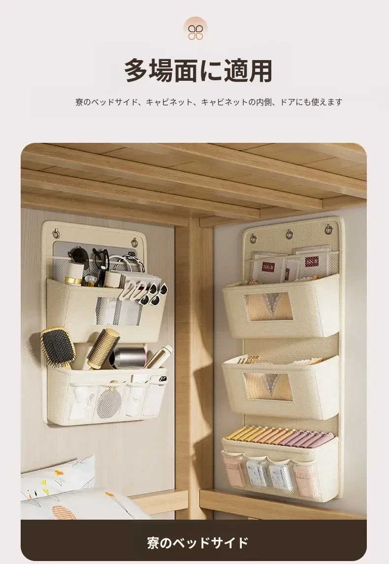 多層壁掛け収納袋 - 宿舎の必需品!ドアの裏に簡単取り付け、布製で見た目もおしゃれ。お部屋をスッキリ整理整頓、スペースを有効活用!