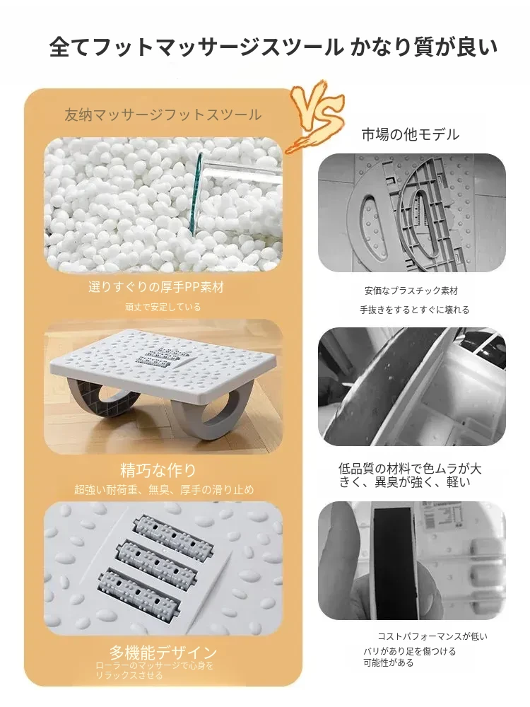 クリームホワイト⭐【滑り止め安定/180°スイング可能/マッサージローラー/厚手PP素材】長さ33.5*幅24*高さ12cm