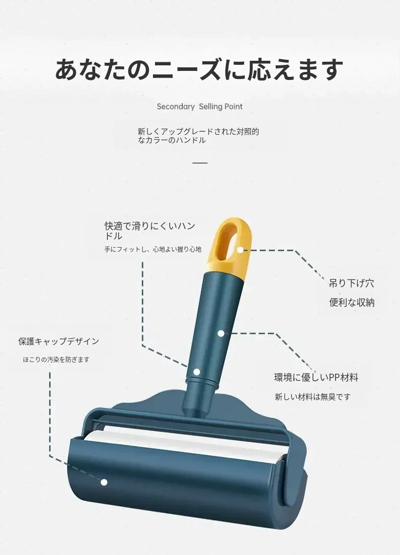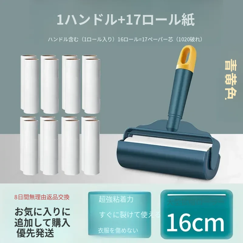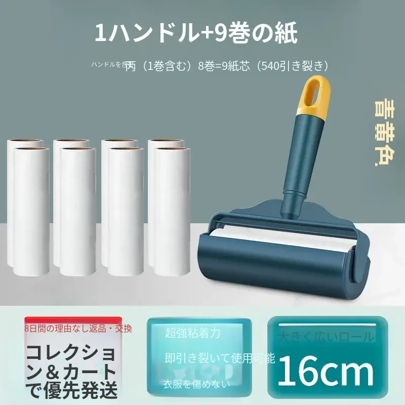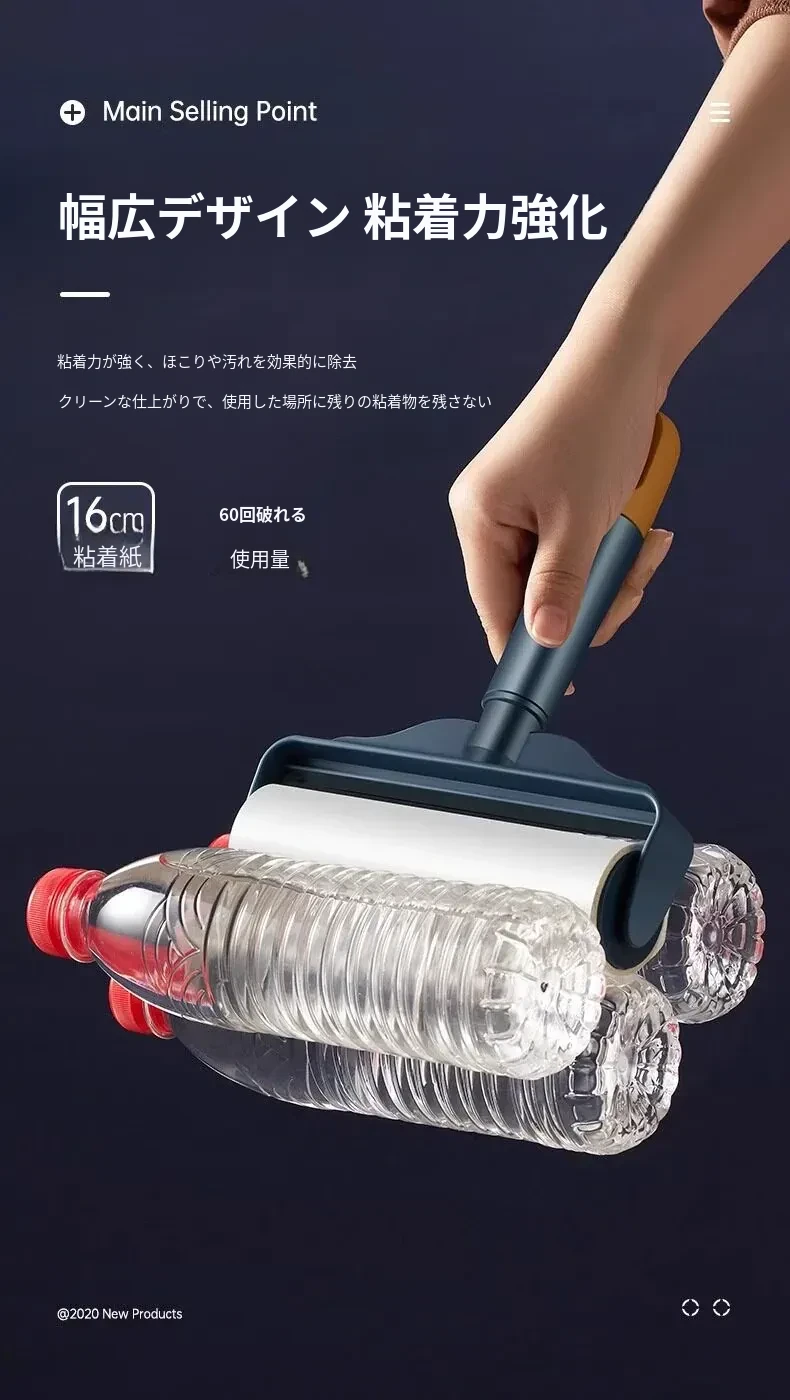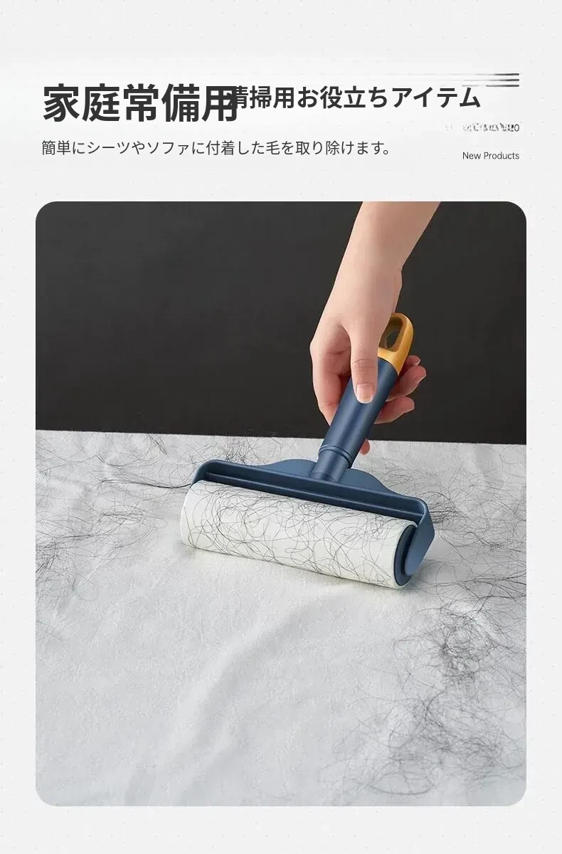 強力粘着ローラー!髪の毛を逃さずキャッチする魔法のクリーナー!ベッドやフロアの毛を簡単にお掃除!使い捨てシートで手軽に清潔。毛の悩みを解決する必須アイテム!