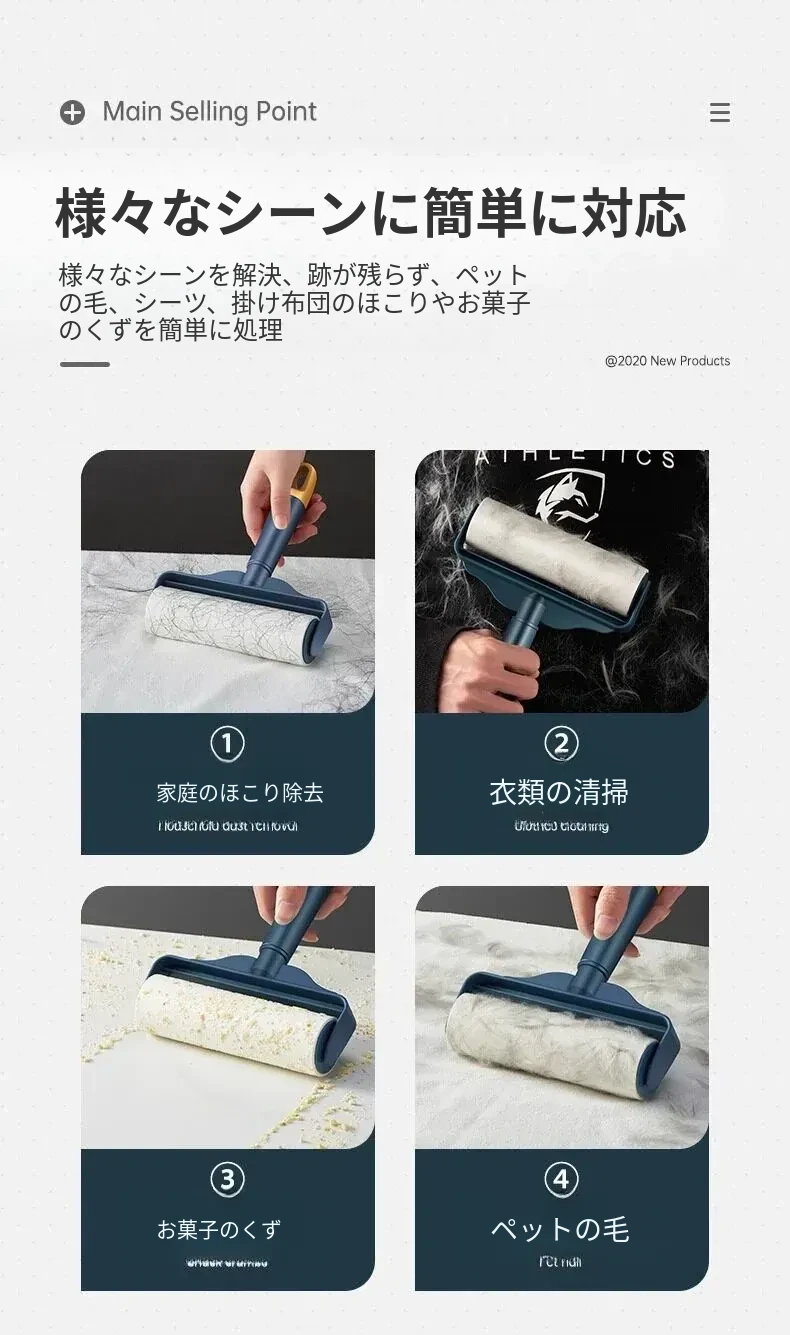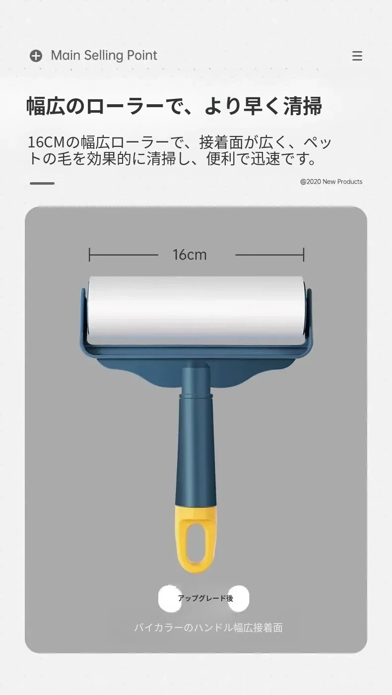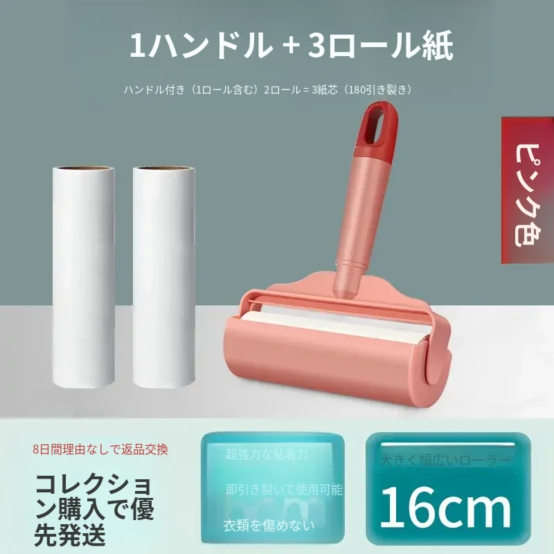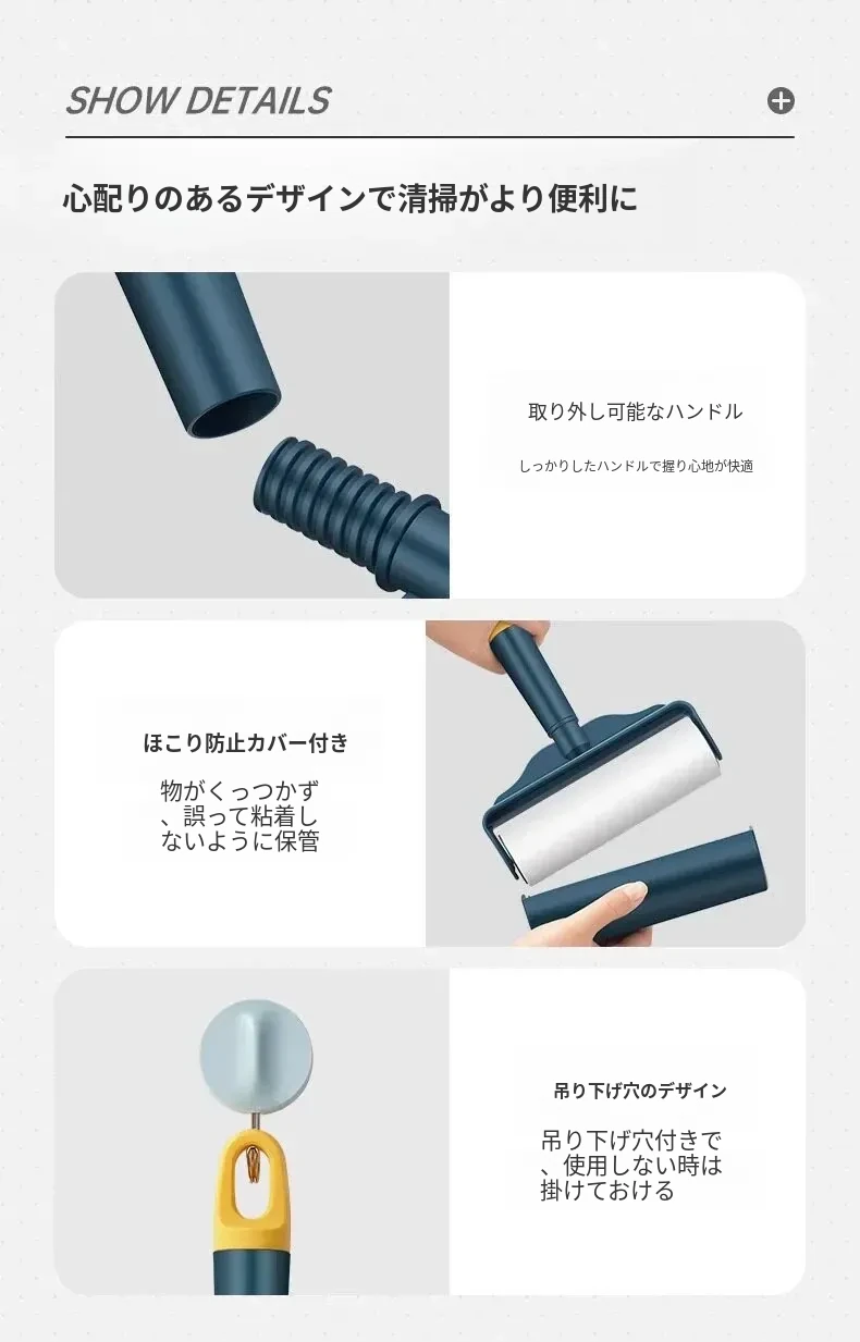 強力粘着ローラー!髪の毛を逃さずキャッチする魔法のクリーナー!ベッドやフロアの毛を簡単にお掃除!使い捨てシートで手軽に清潔。毛の悩みを解決する必須アイテム!