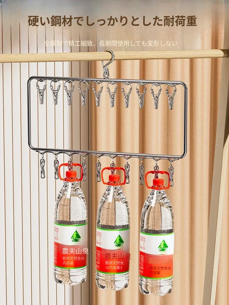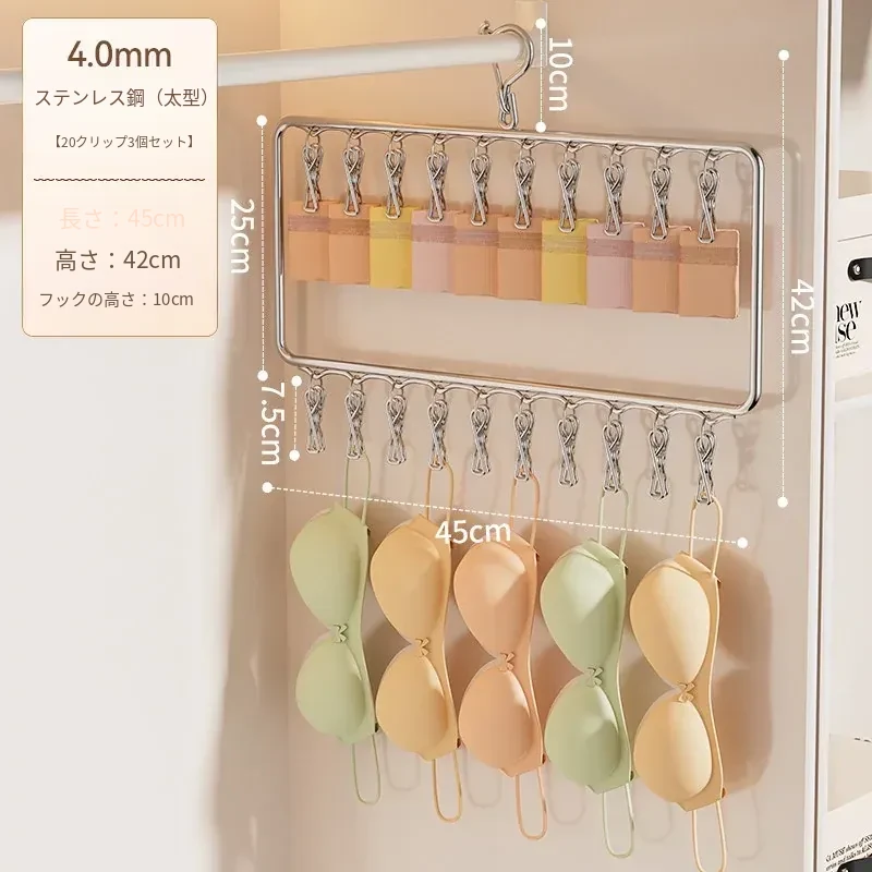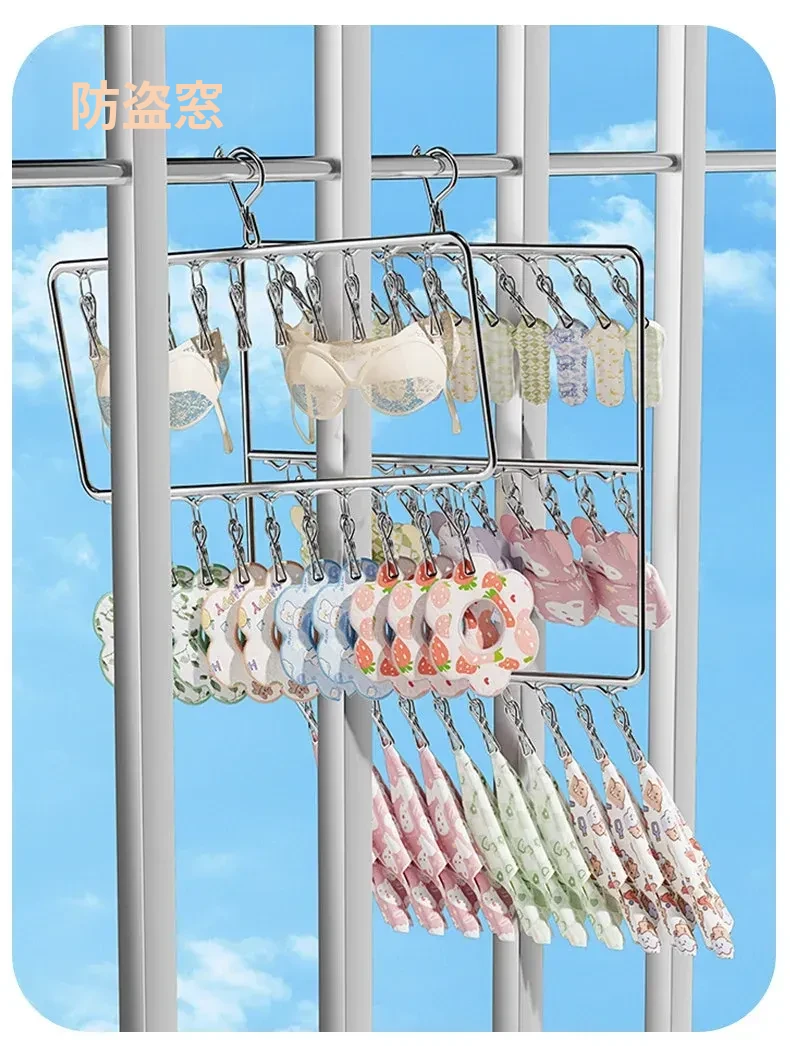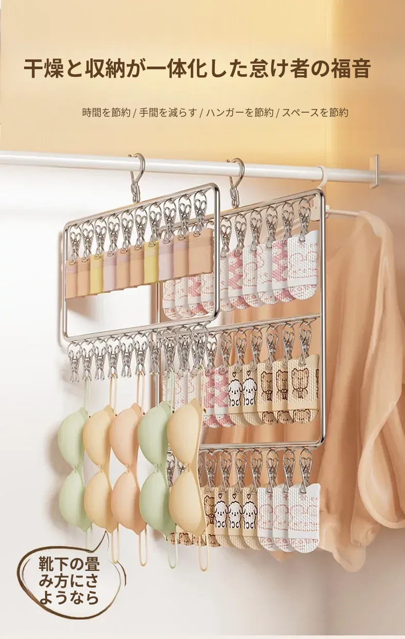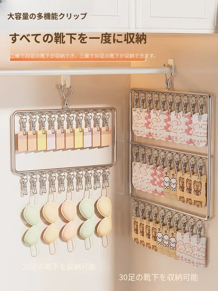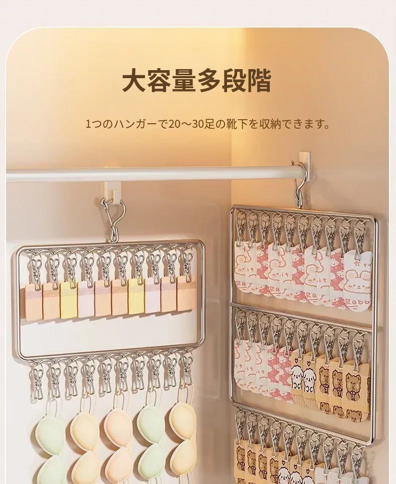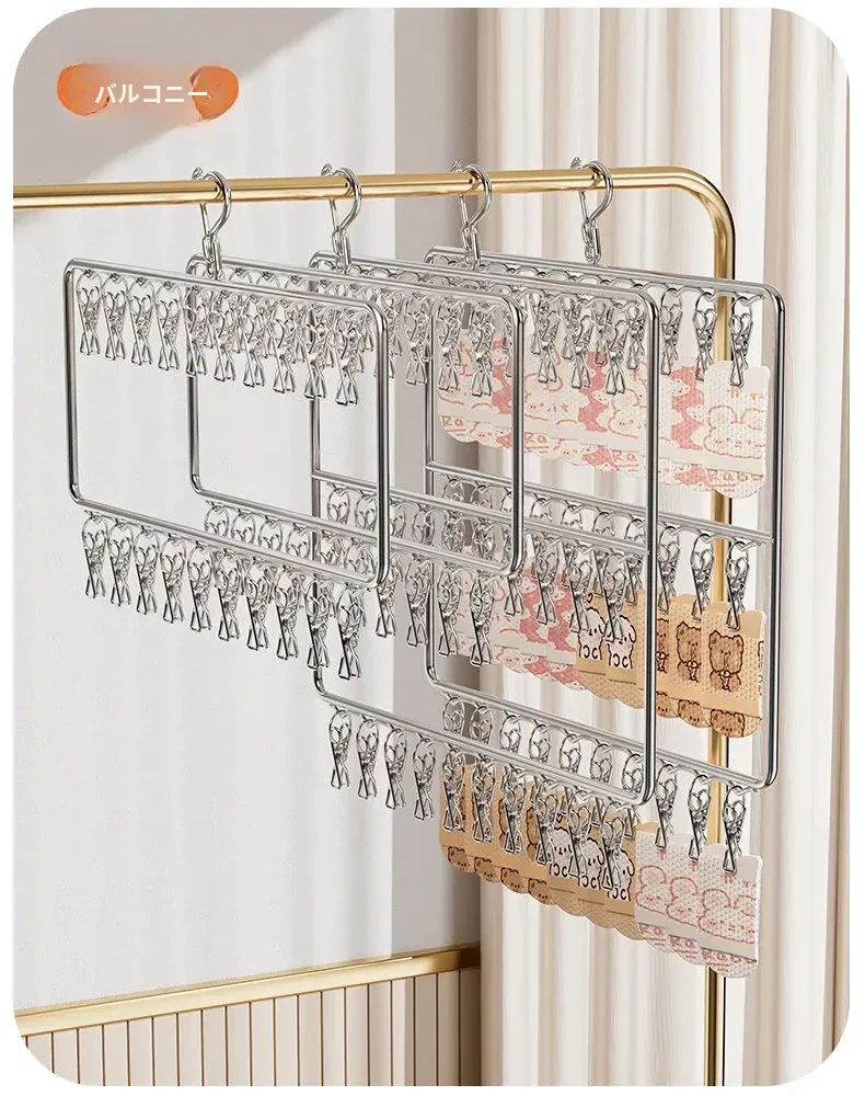 ステンレス製靴下干し神器!多機能ハンガーで衣類をしっかり固定!風に強い設計で安心して使用できる、家庭用の便利な洗濯ラック。クリップ付きで、靴下や小物も一緒に干せる!