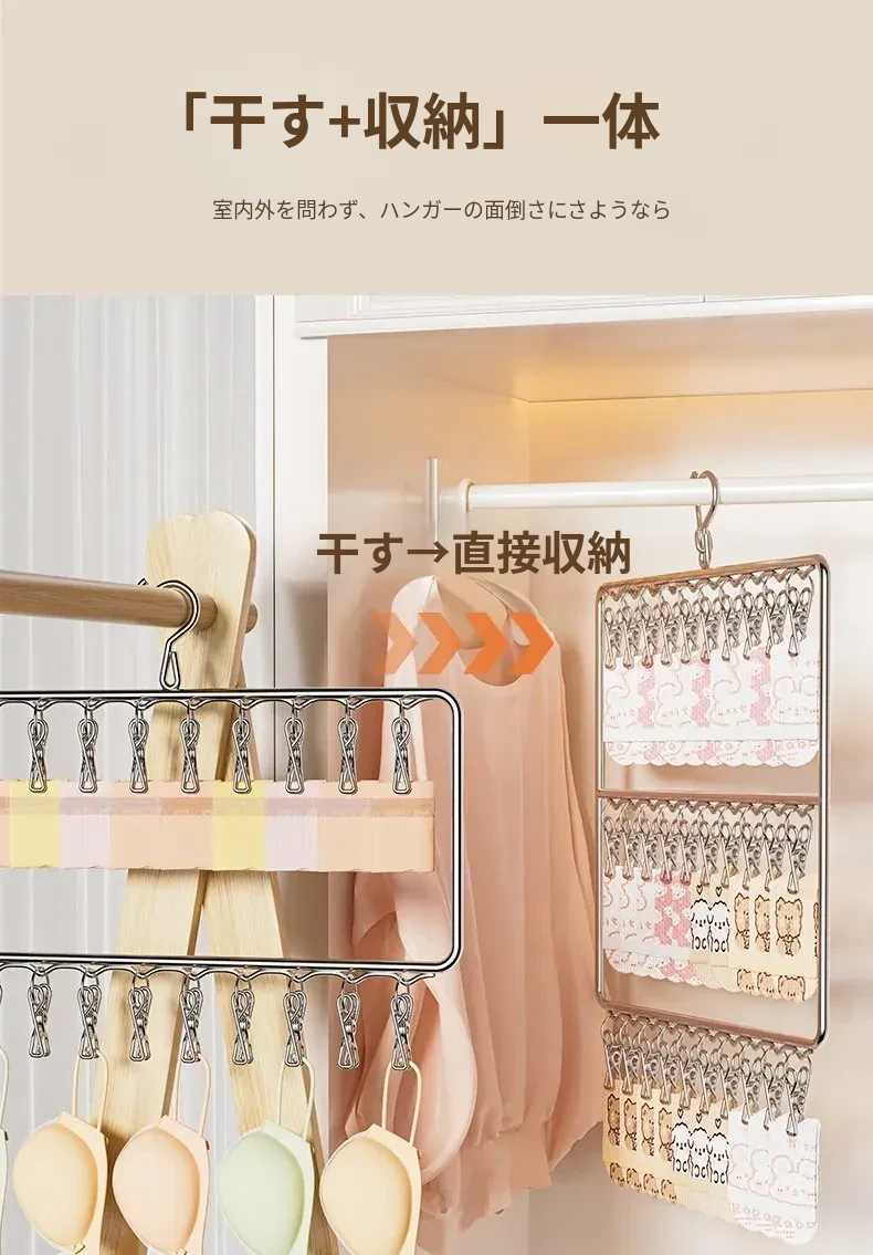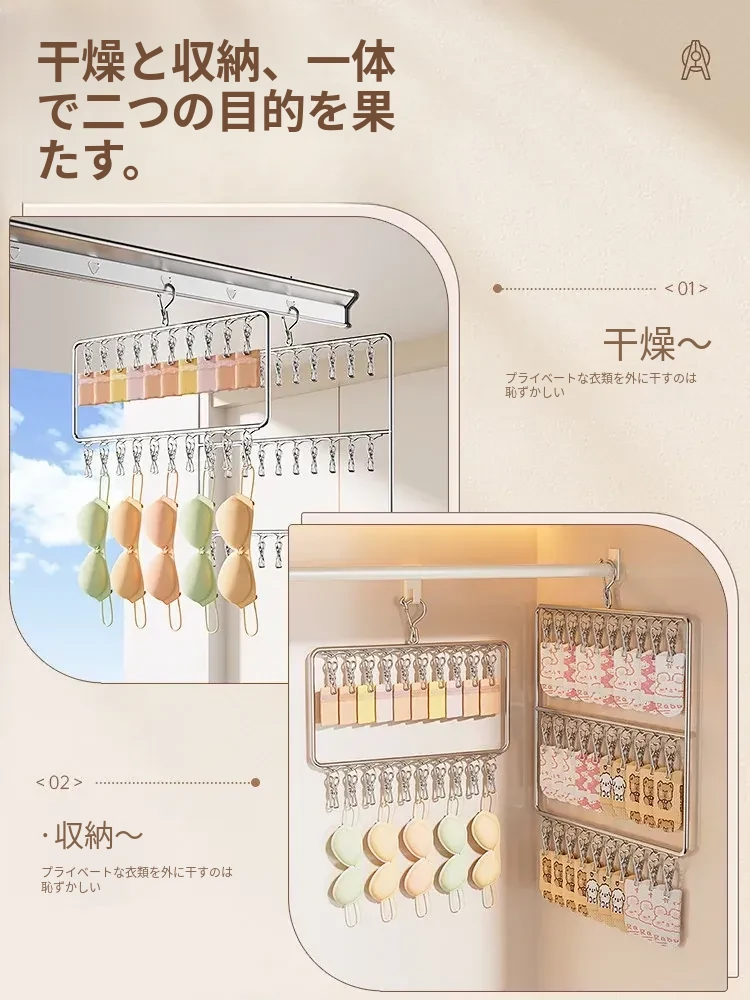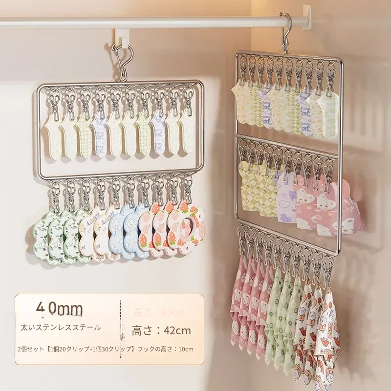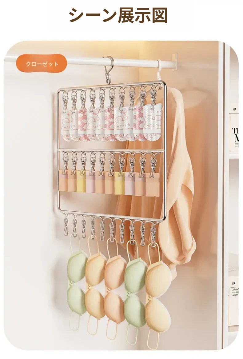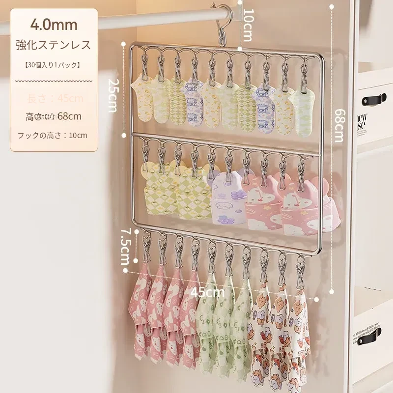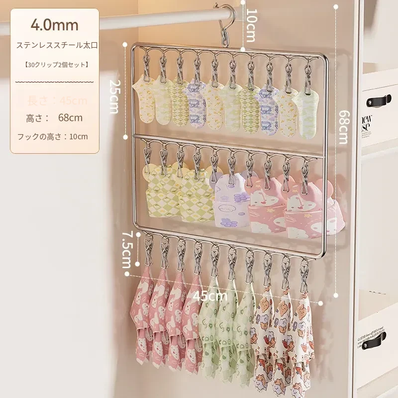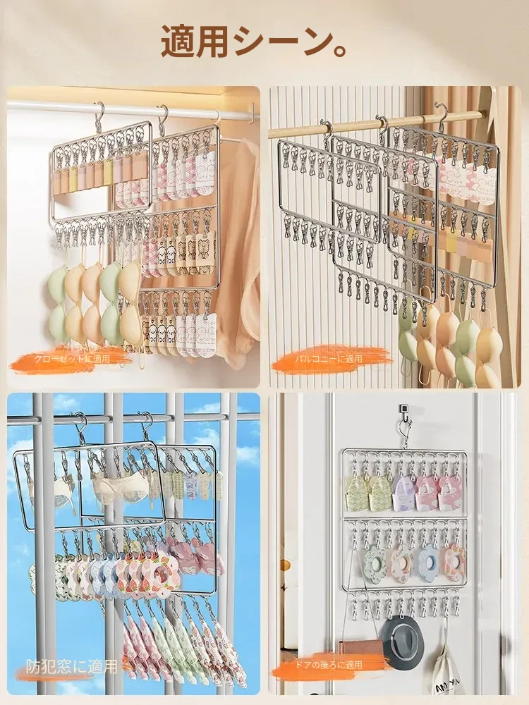 ステンレス製靴下干し神器!多機能ハンガーで衣類をしっかり固定!風に強い設計で安心して使用できる、家庭用の便利な洗濯ラック。クリップ付きで、靴下や小物も一緒に干せる!