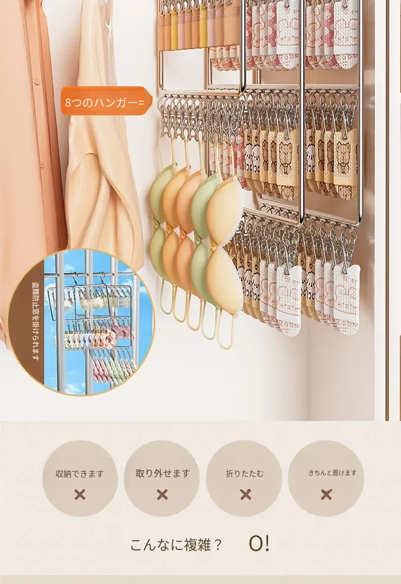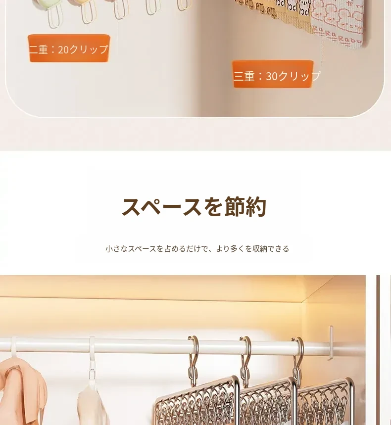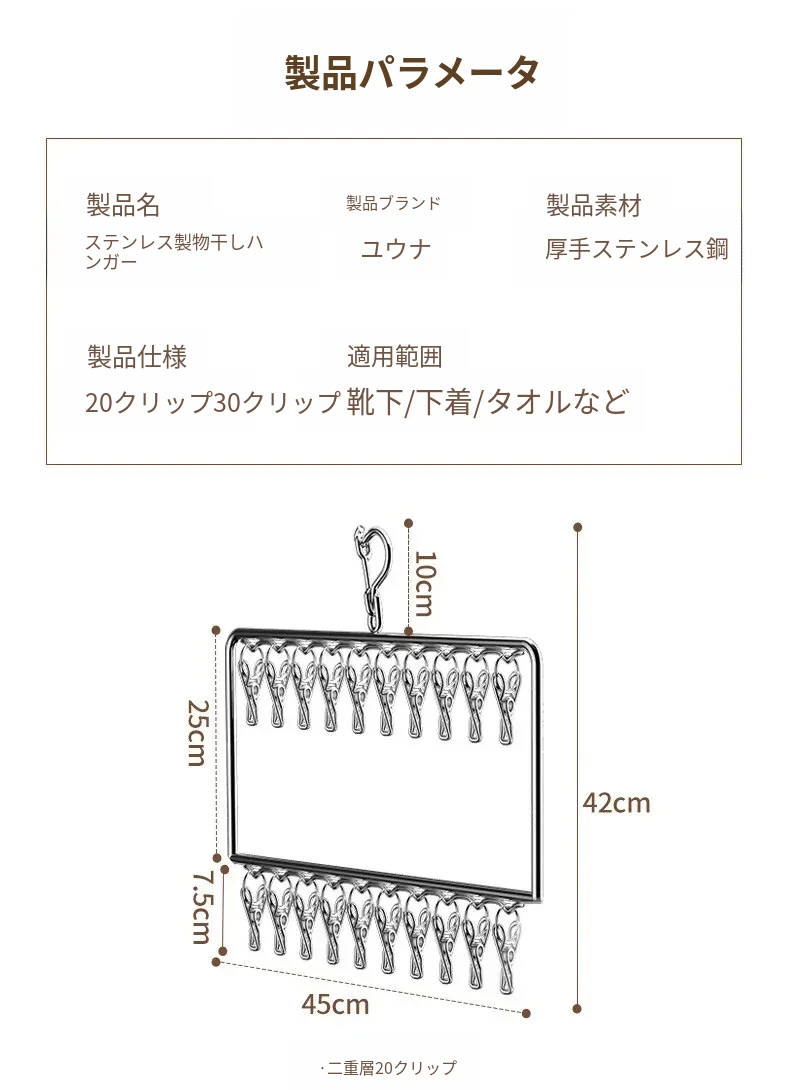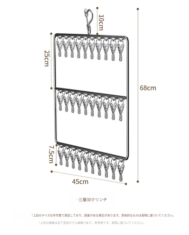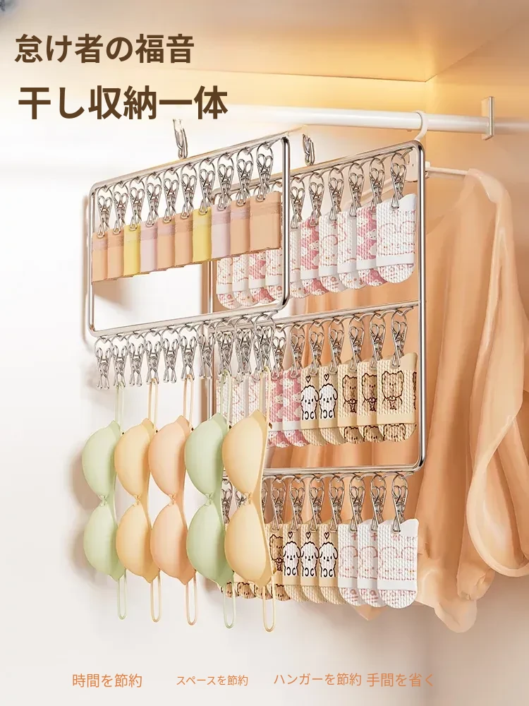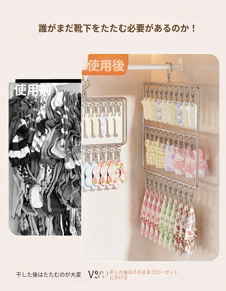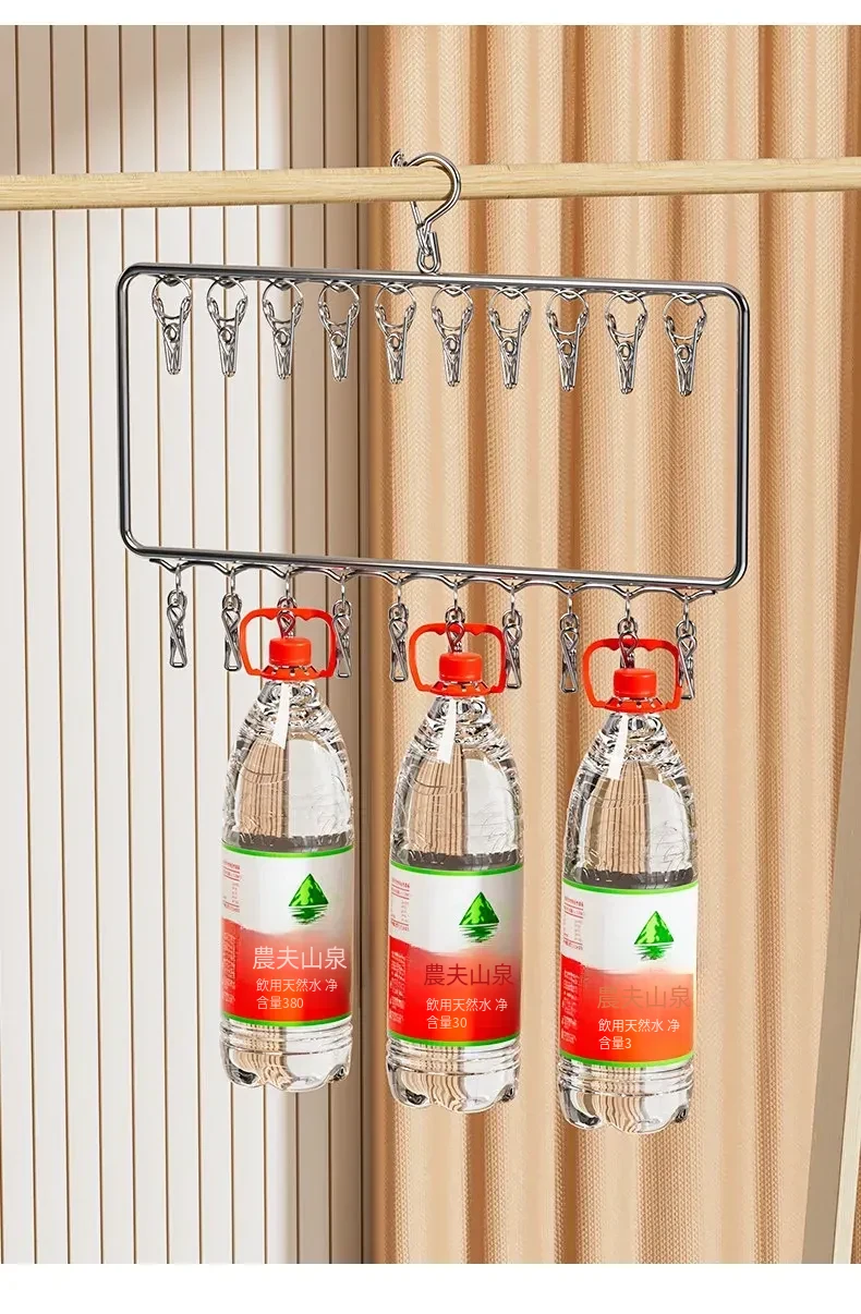ステンレス製靴下干し神器!多機能ハンガーで衣類をしっかり固定!風に強い設計で安心して使用できる、家庭用の便利な洗濯ラック。クリップ付きで、靴下や小物も一緒に干せる!