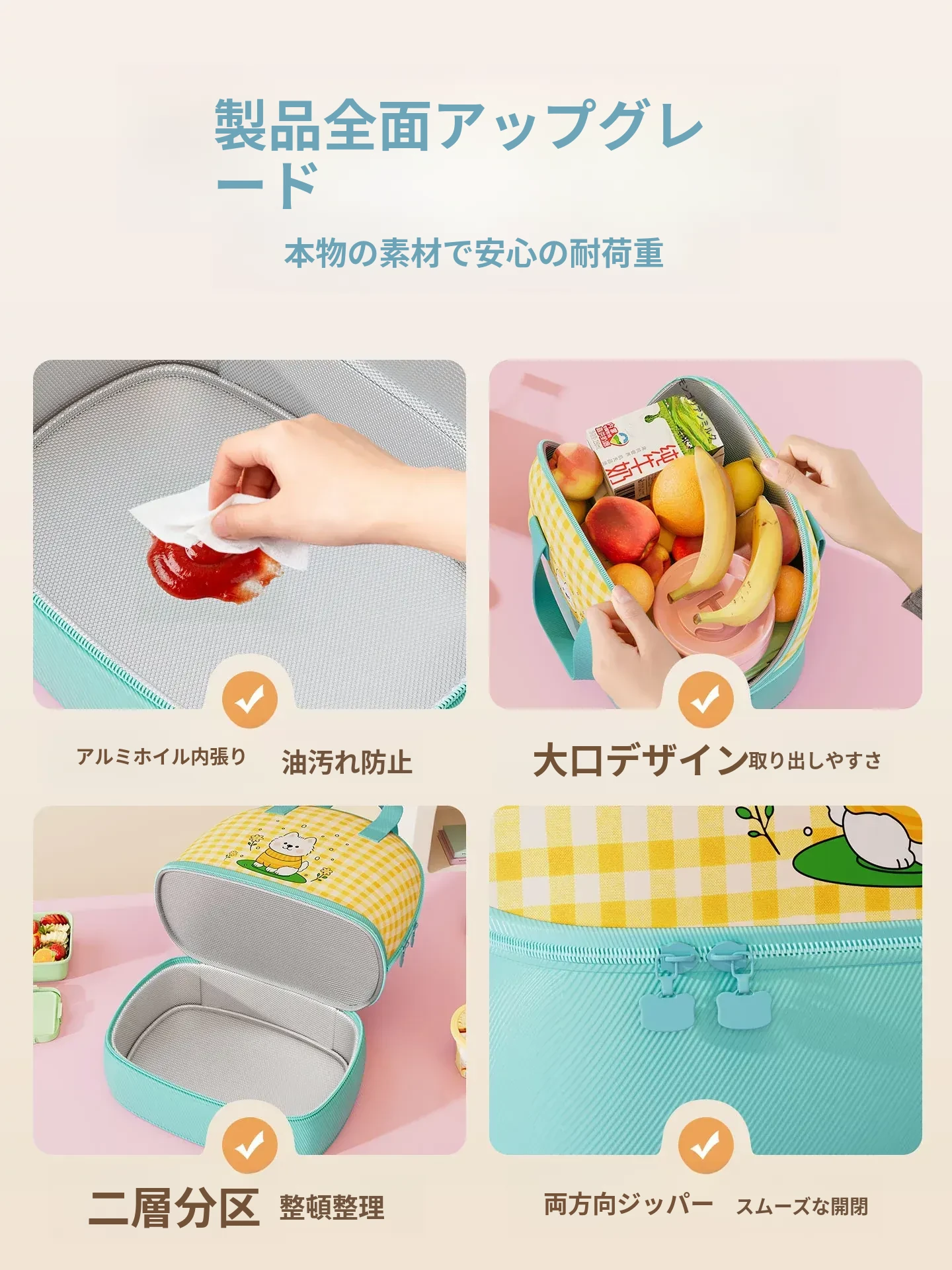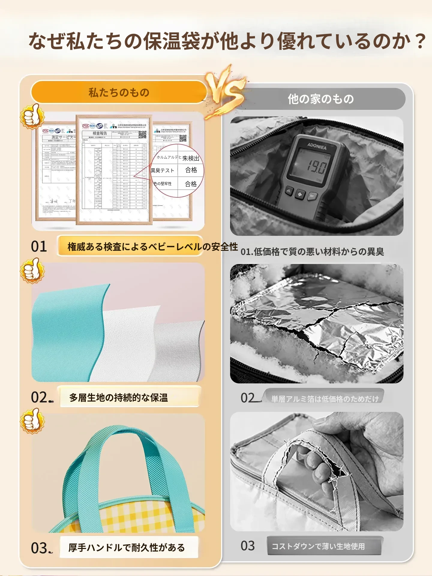 高品質の保温弁当バッグ - 厚手アルミ箔使用、スタイリッシュデザインで通勤・通学に最適!防水機能付きで、ランチを美味しく保ちます。