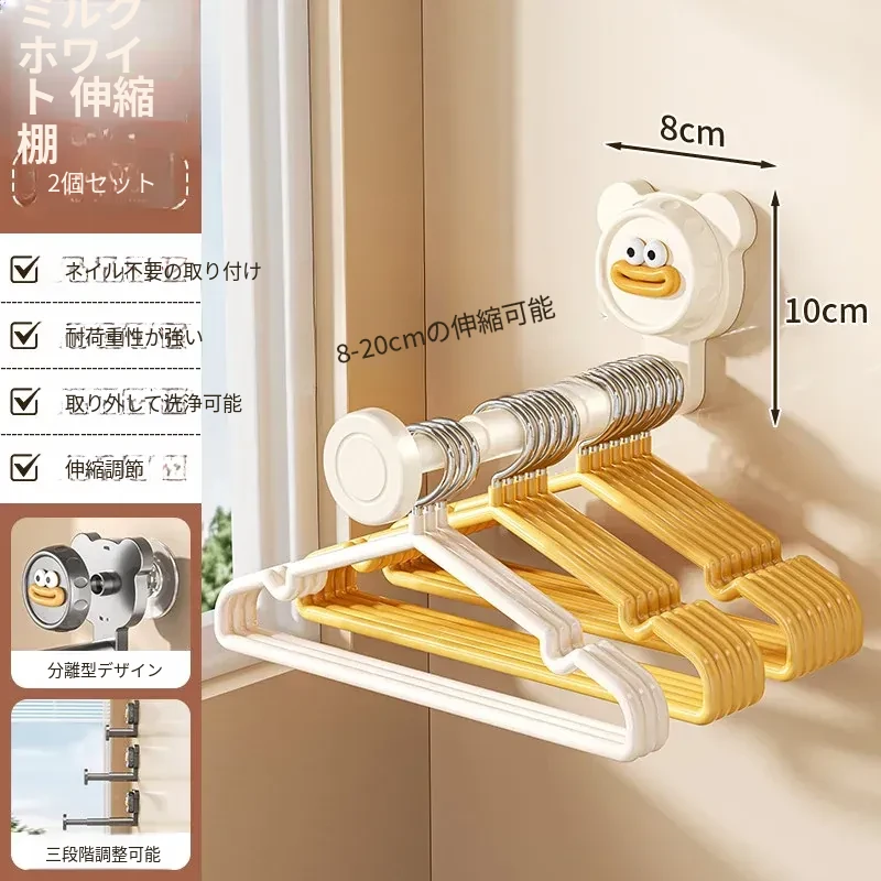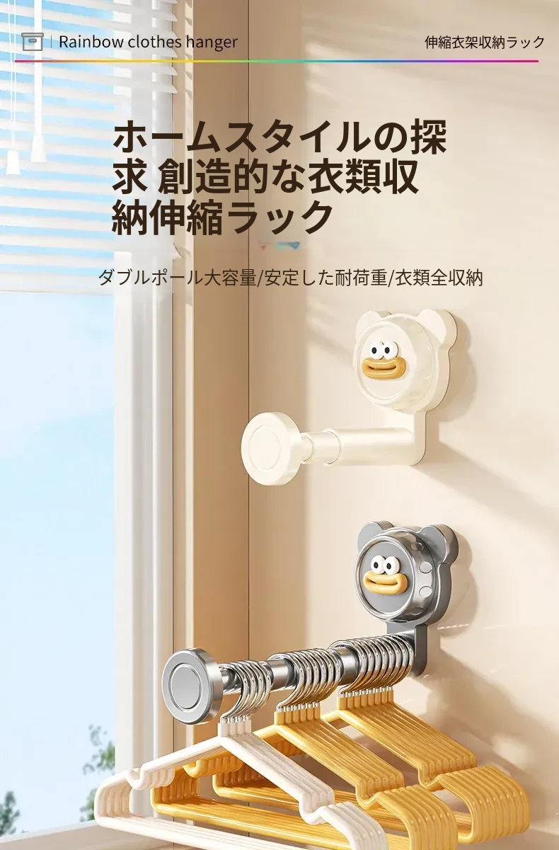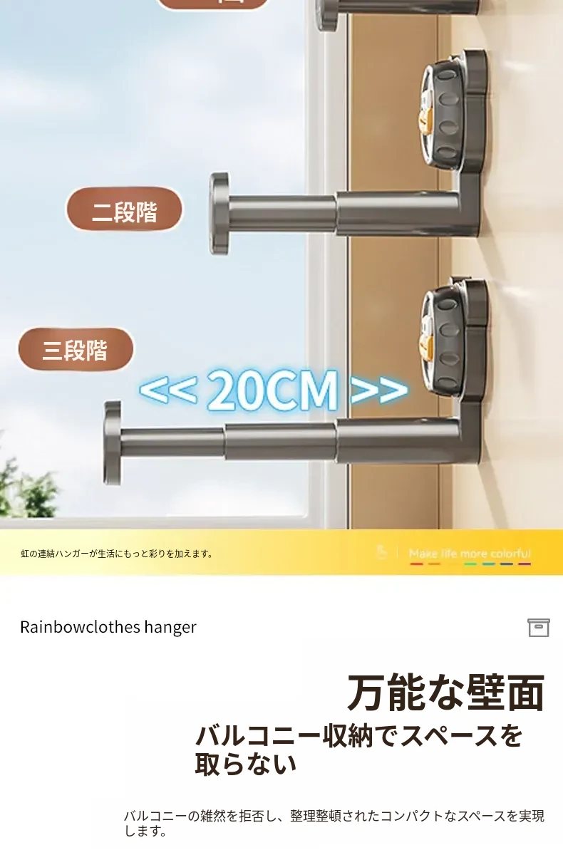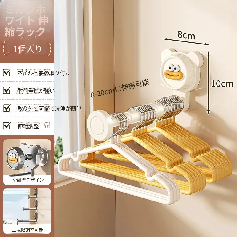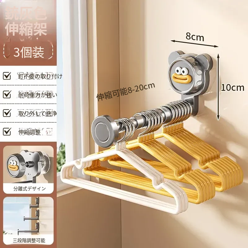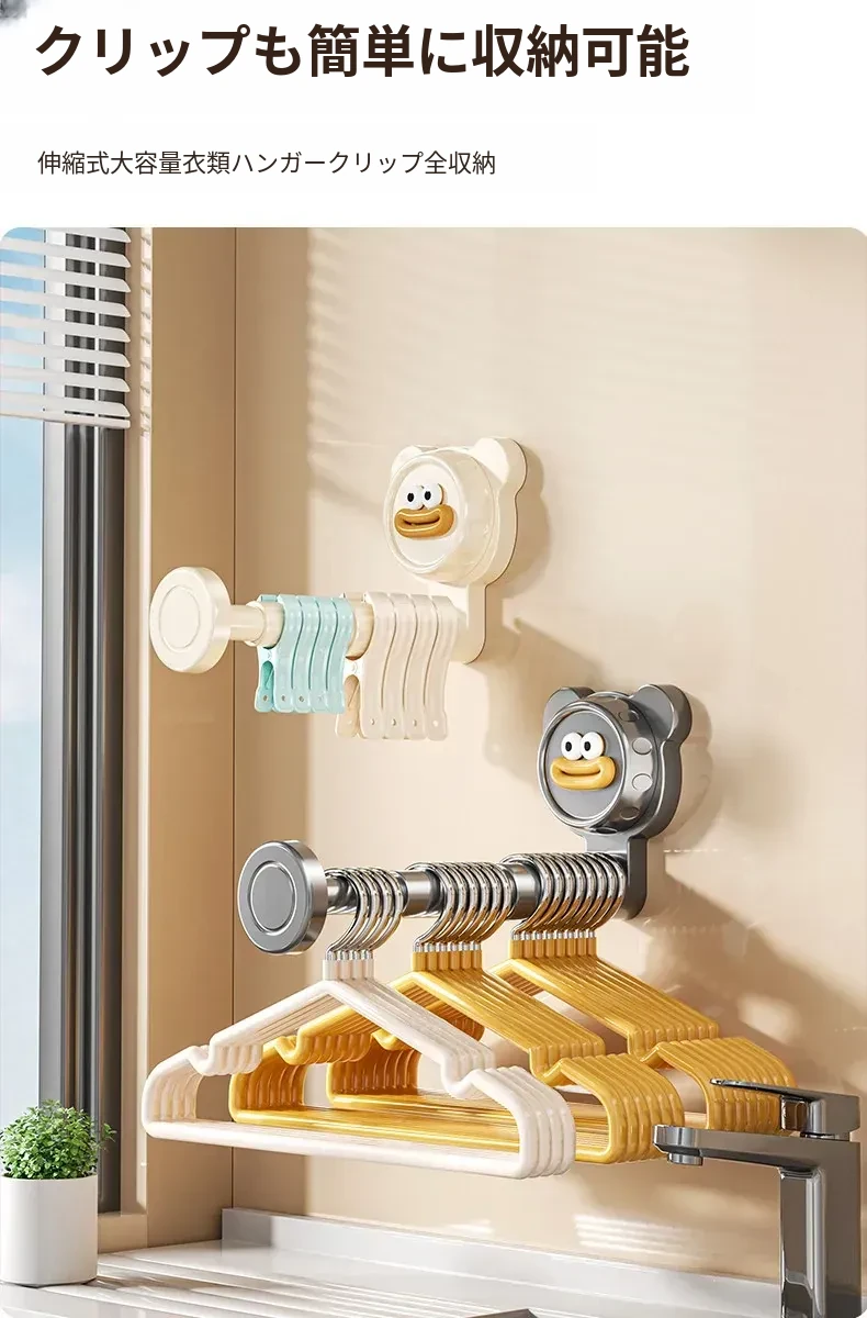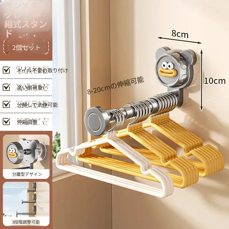 吸盤式バルコニー衣類ハンガー収納神器!穴を開けずに簡単取り付け、家で使える多機能フック付き伸縮ハンガー。壁に取り付けてスペースを有効活用し、すっきり整理整頓!