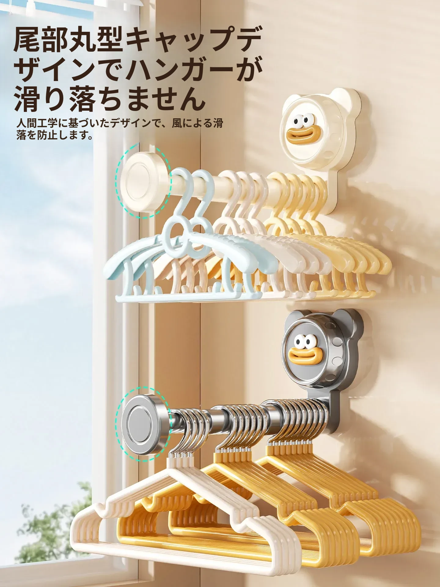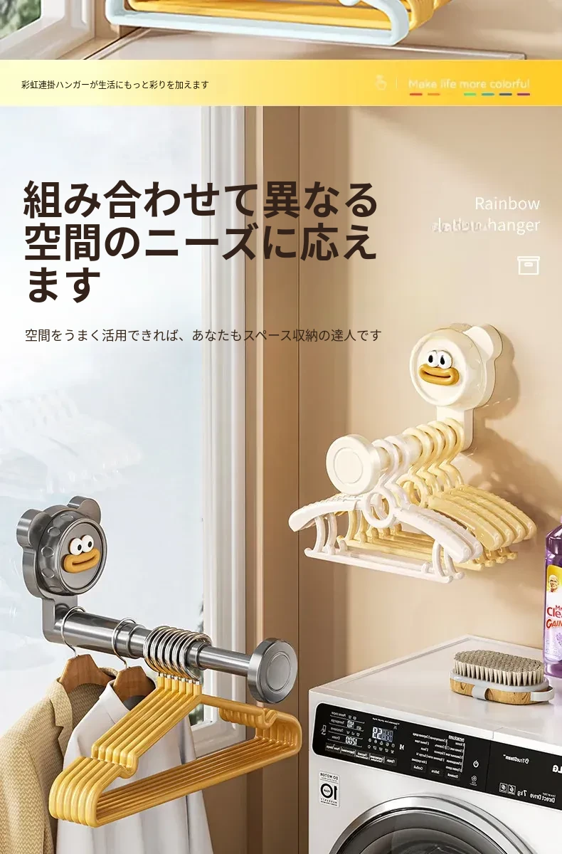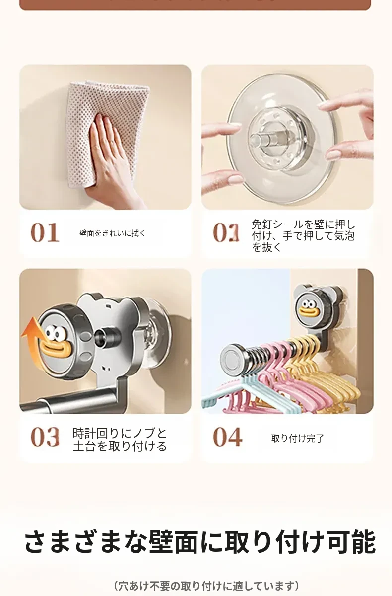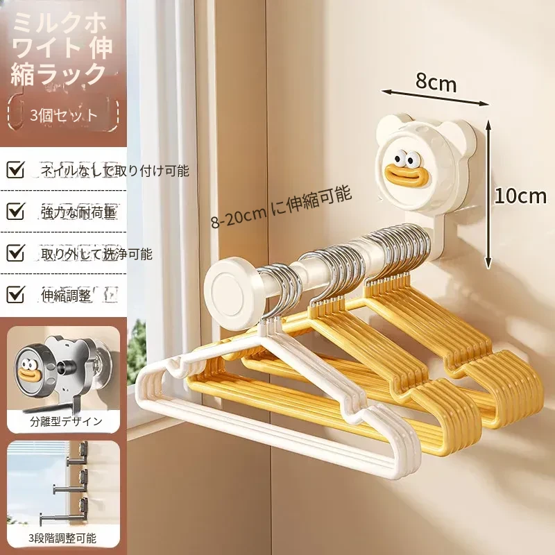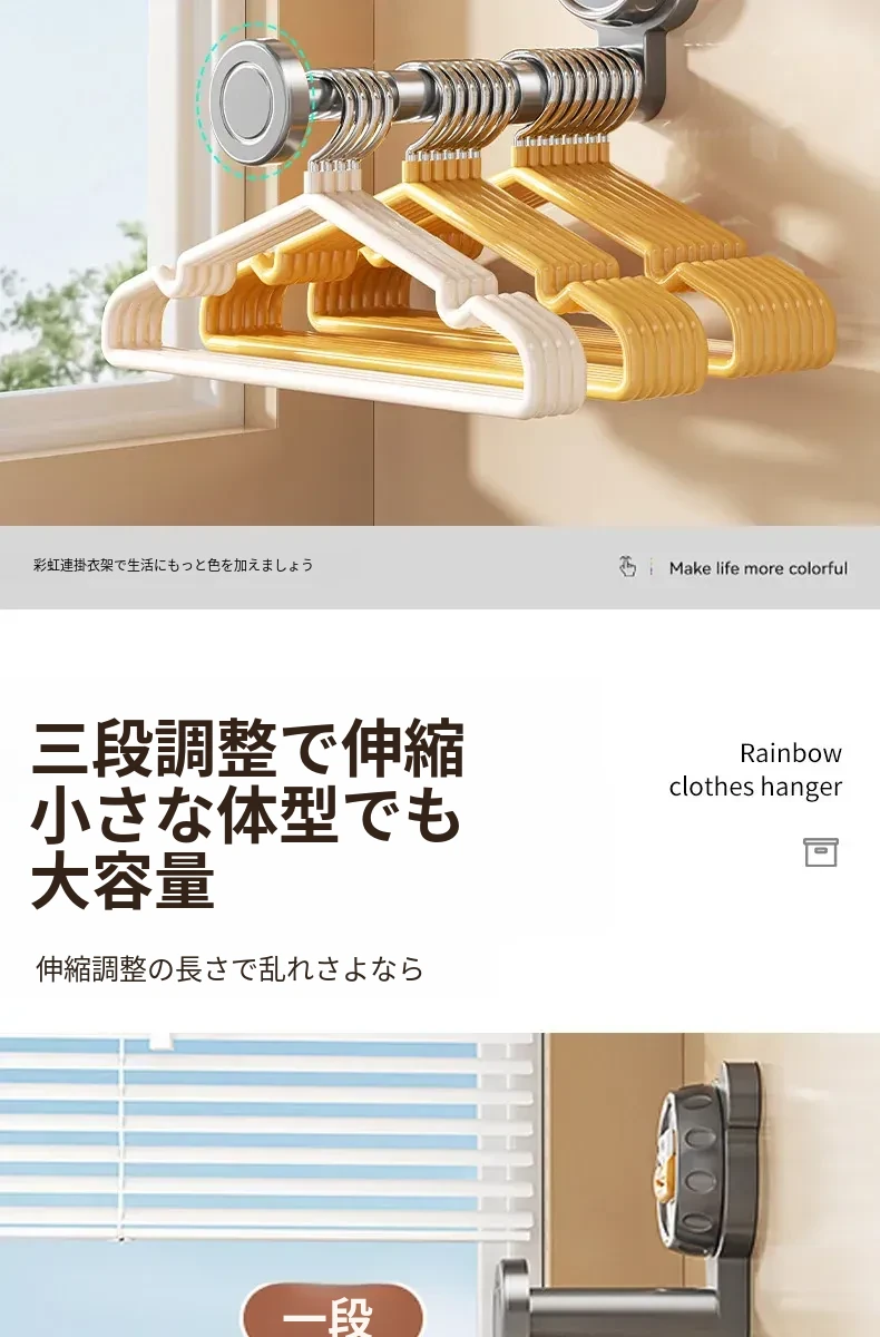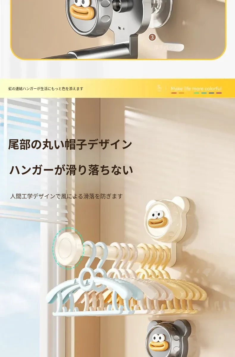 吸盤式バルコニー衣類ハンガー収納神器!穴を開けずに簡単取り付け、家で使える多機能フック付き伸縮ハンガー。壁に取り付けてスペースを有効活用し、すっきり整理整頓!