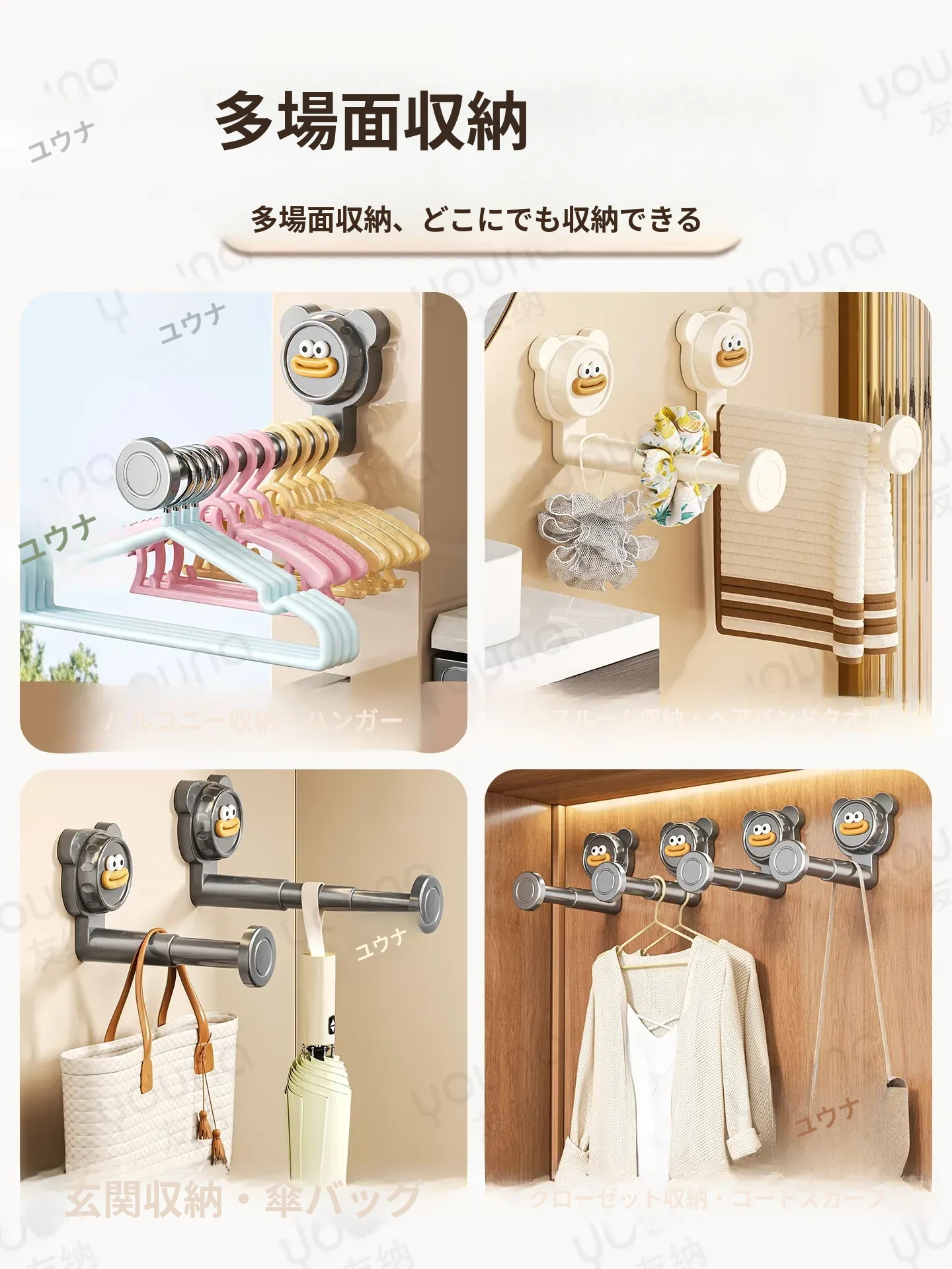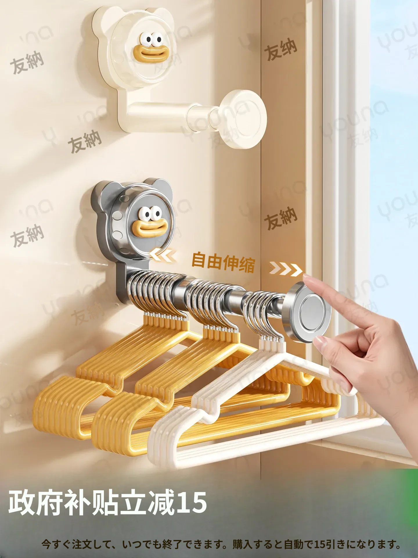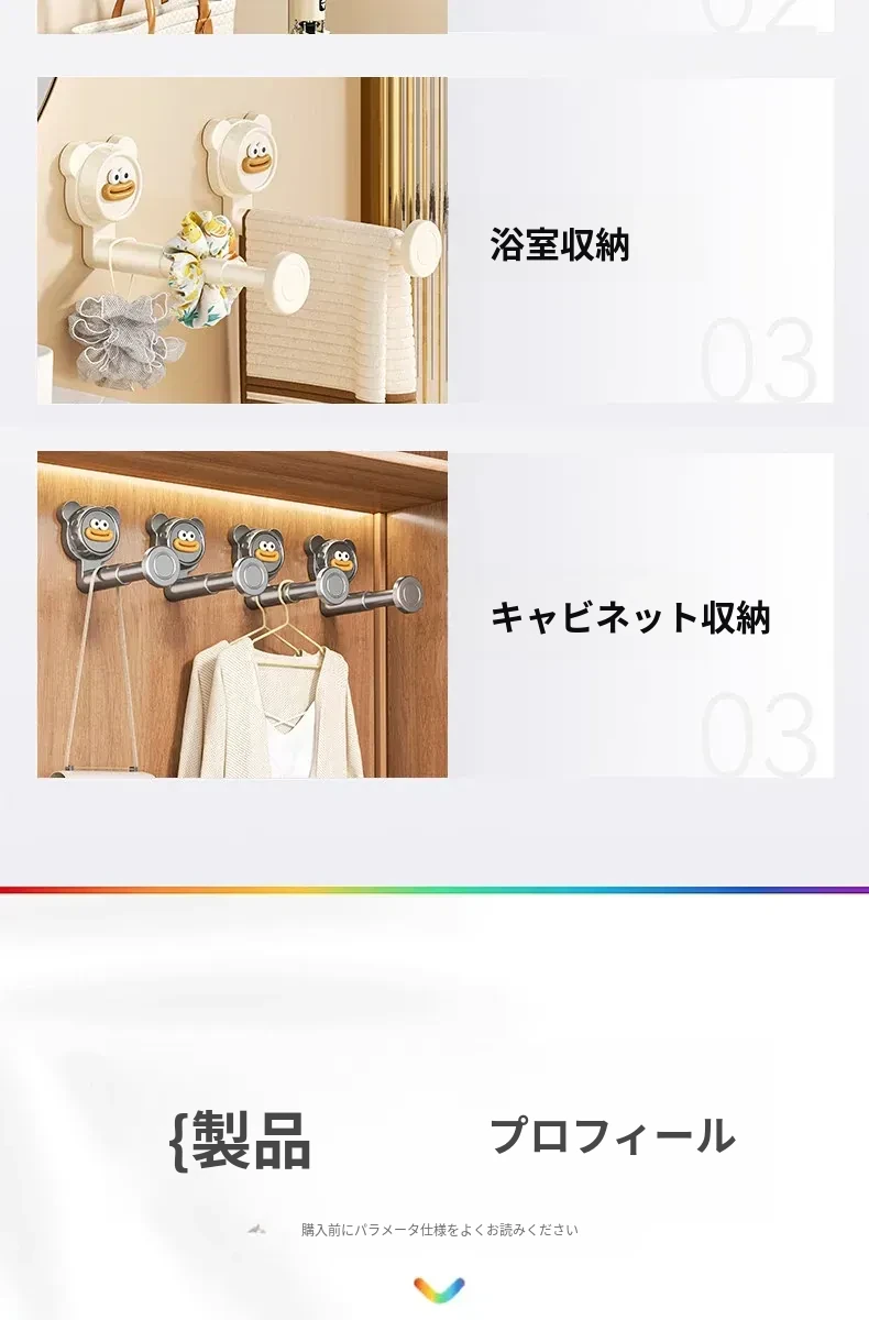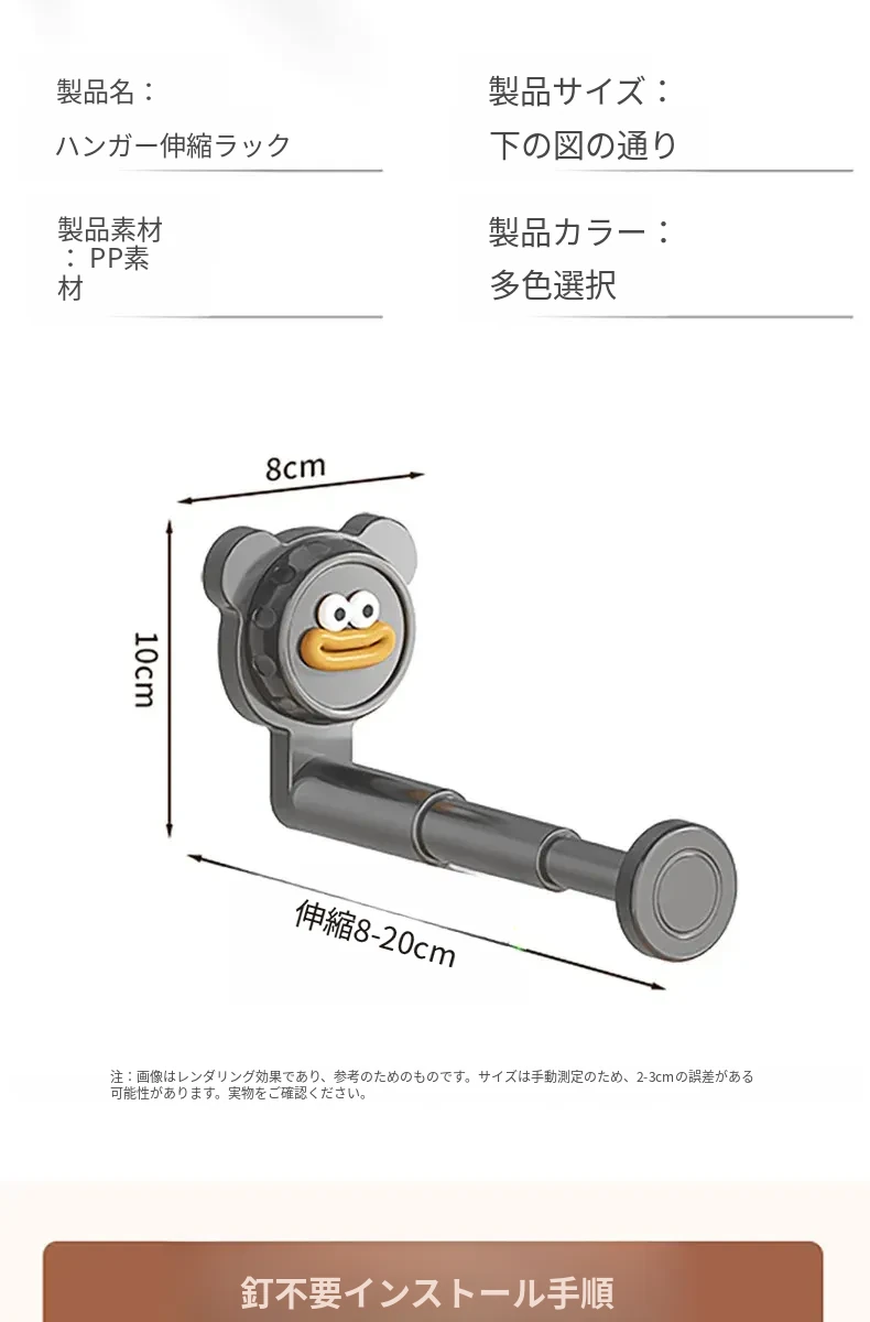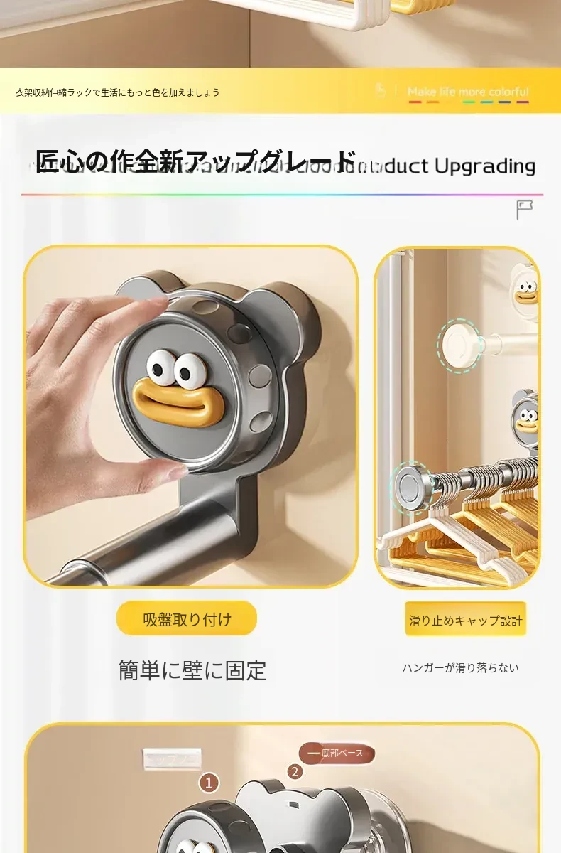 吸盤式バルコニー衣類ハンガー収納神器!穴を開けずに簡単取り付け、家で使える多機能フック付き伸縮ハンガー。壁に取り付けてスペースを有効活用し、すっきり整理整頓!