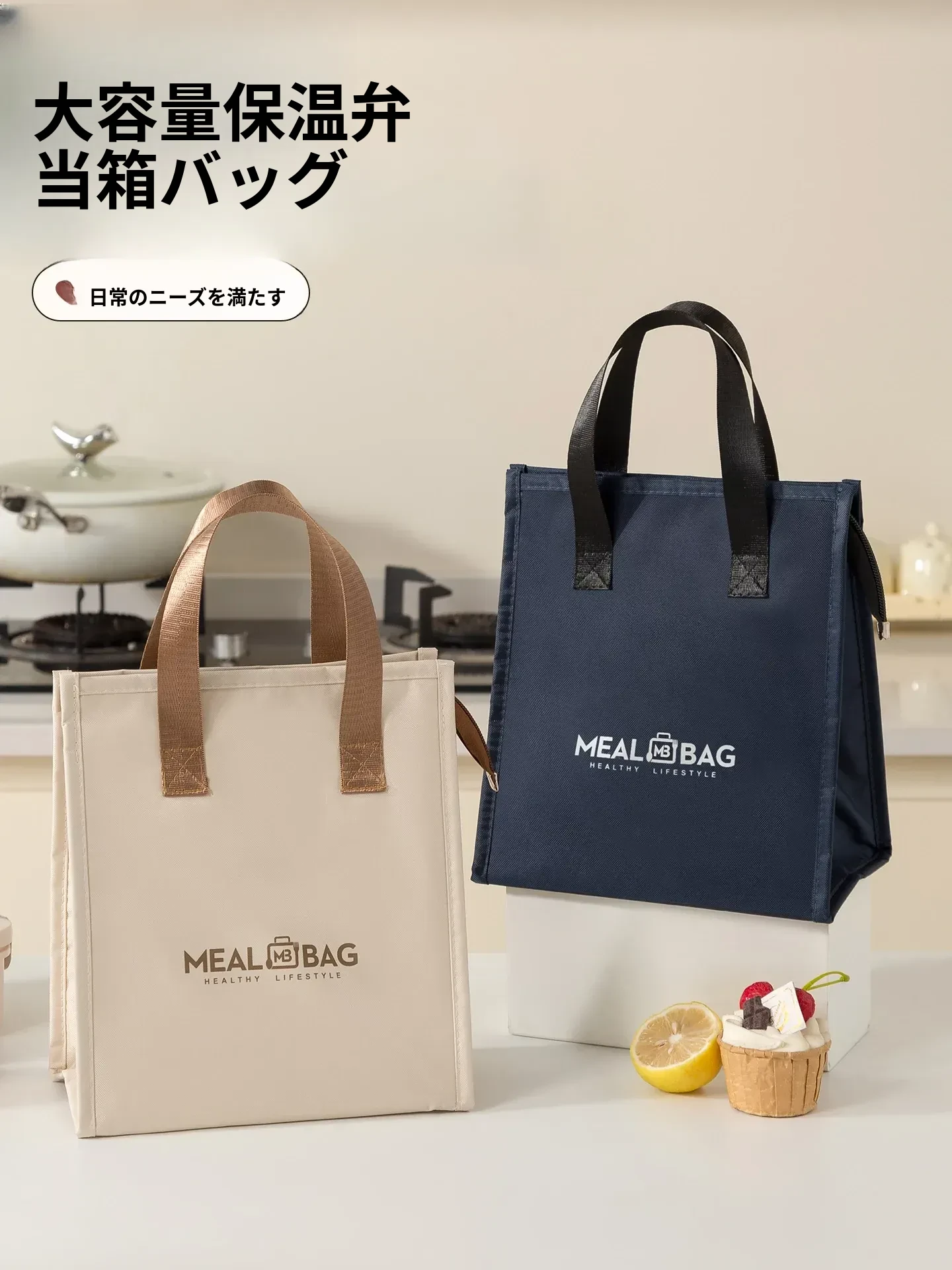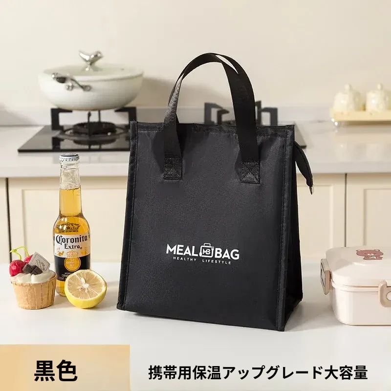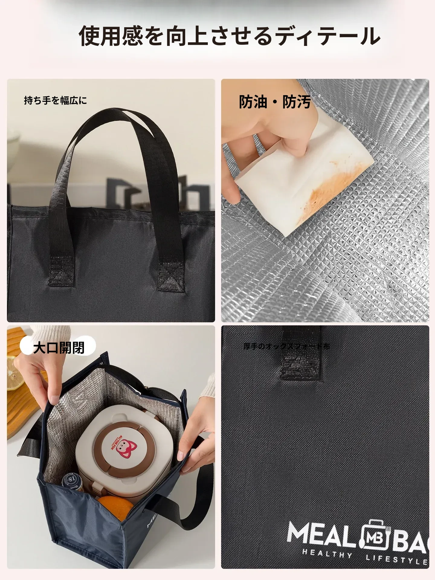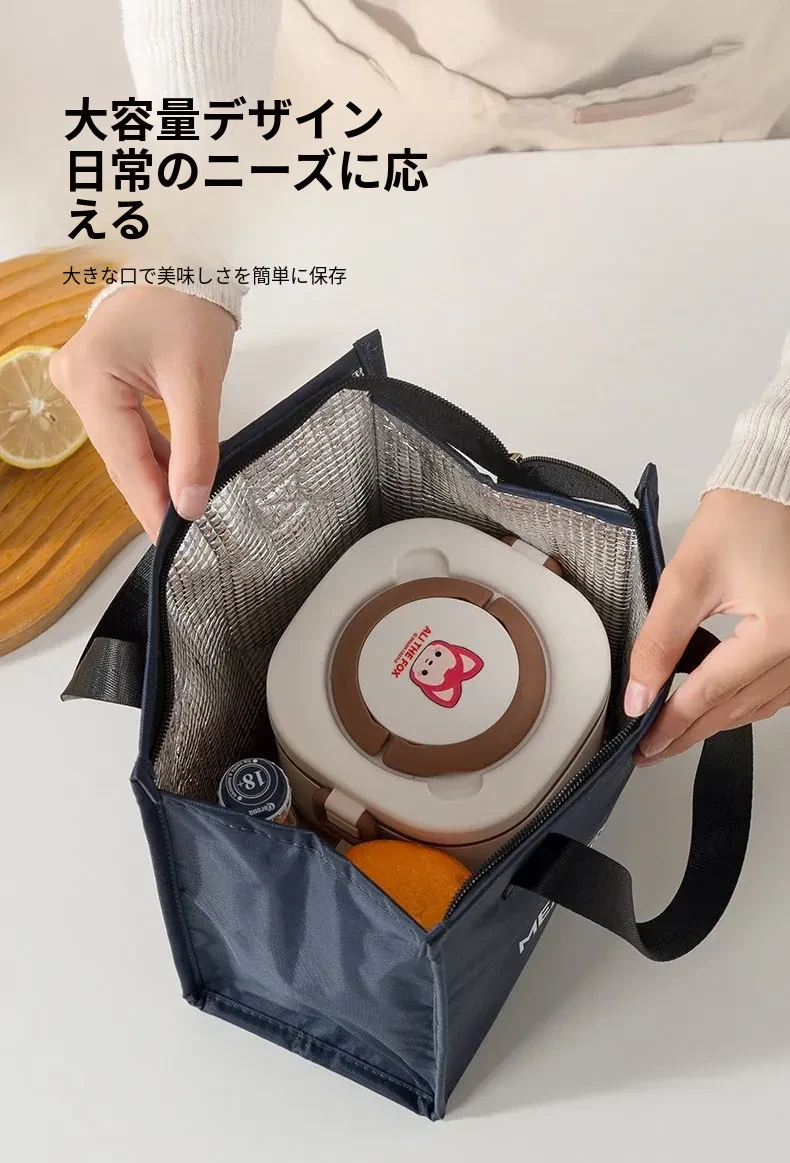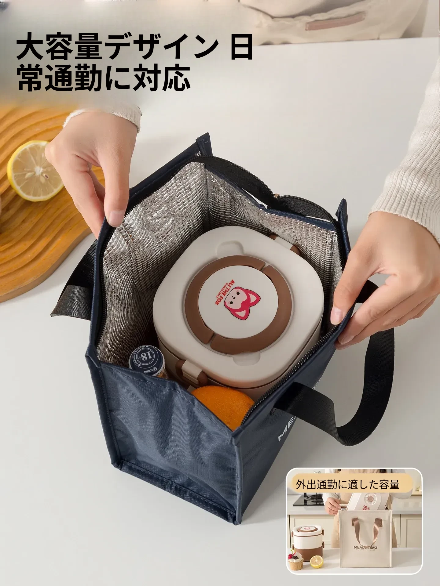 厚手提アルミ保温バッグ - 防水&保温性抜群!お弁当やランチボックスに最適。仕事や学校にぴったりの便利アイテム!