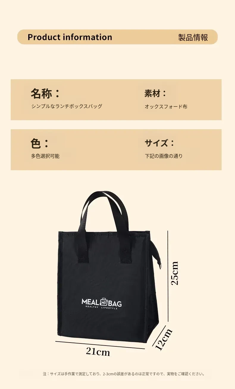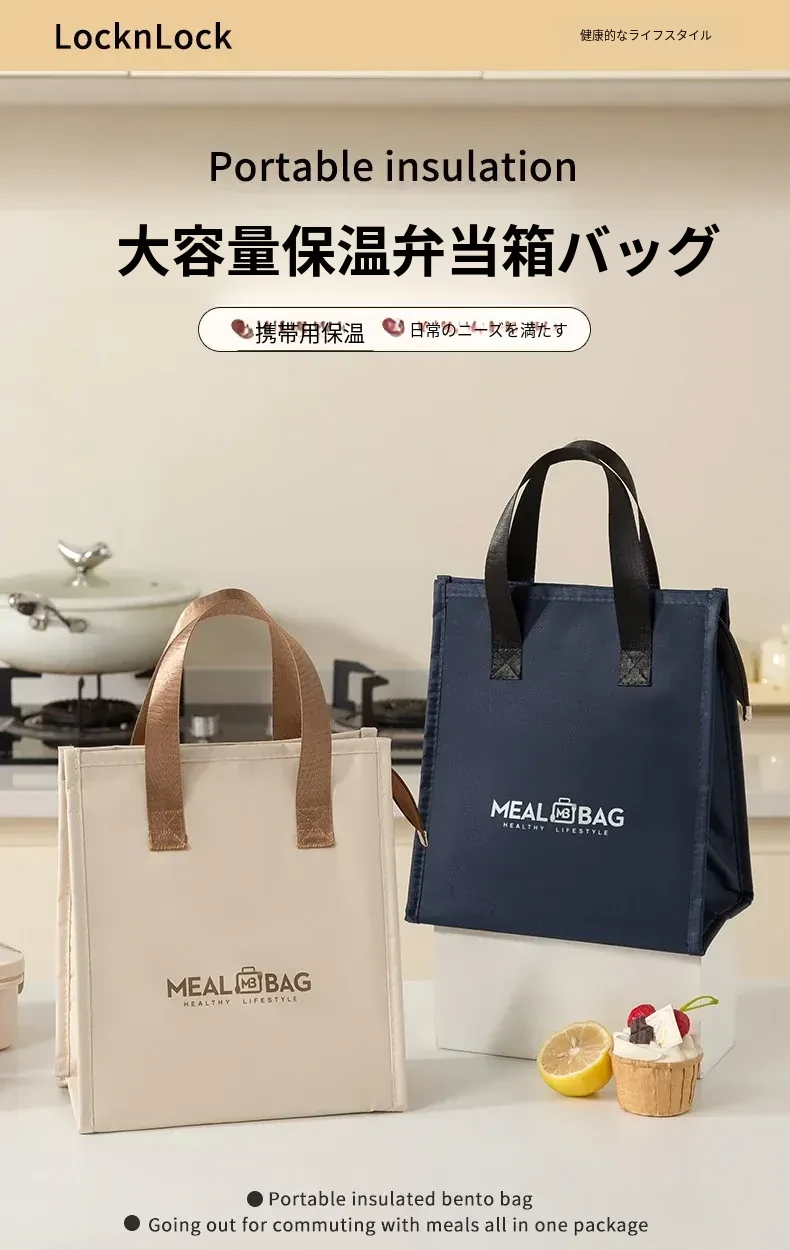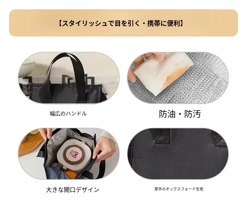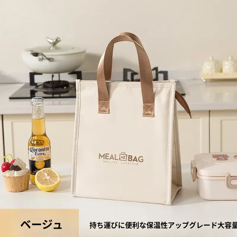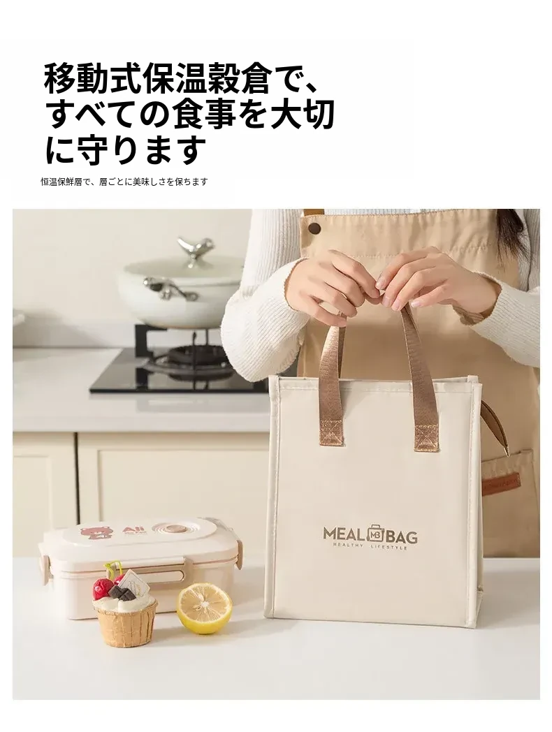 厚手提アルミ保温バッグ - 防水&保温性抜群!お弁当やランチボックスに最適。仕事や学校にぴったりの便利アイテム!