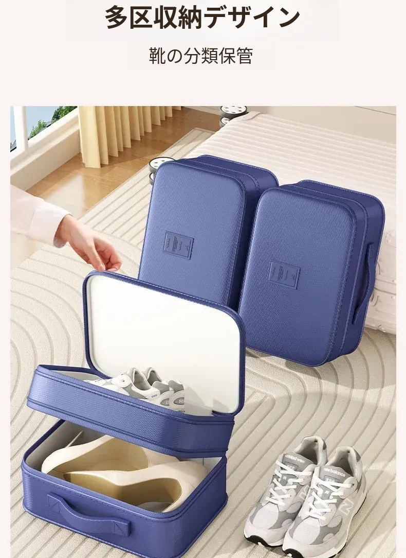 紺宇ブルー-アップグレード版【特大】3-4足の靴が収納可能