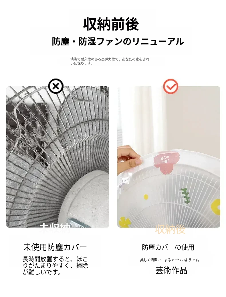 家庭用スタンド扇用防塵カバー - 新デザイン!全方位保護でホコリをシャットアウト!お手入れ簡単、どんなスタンド扇にもフィット!あなたの扇風機をいつでも清潔に保つための必需品!