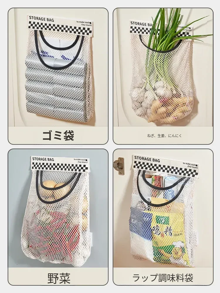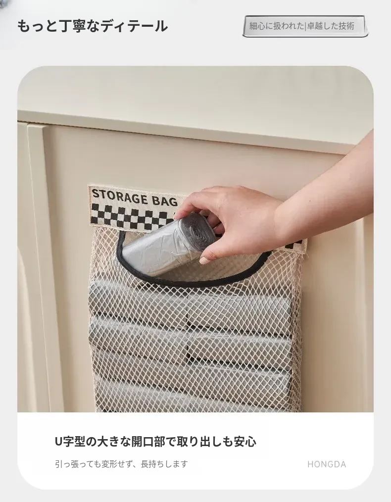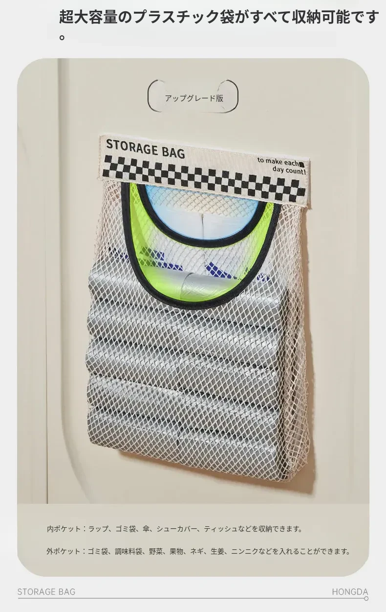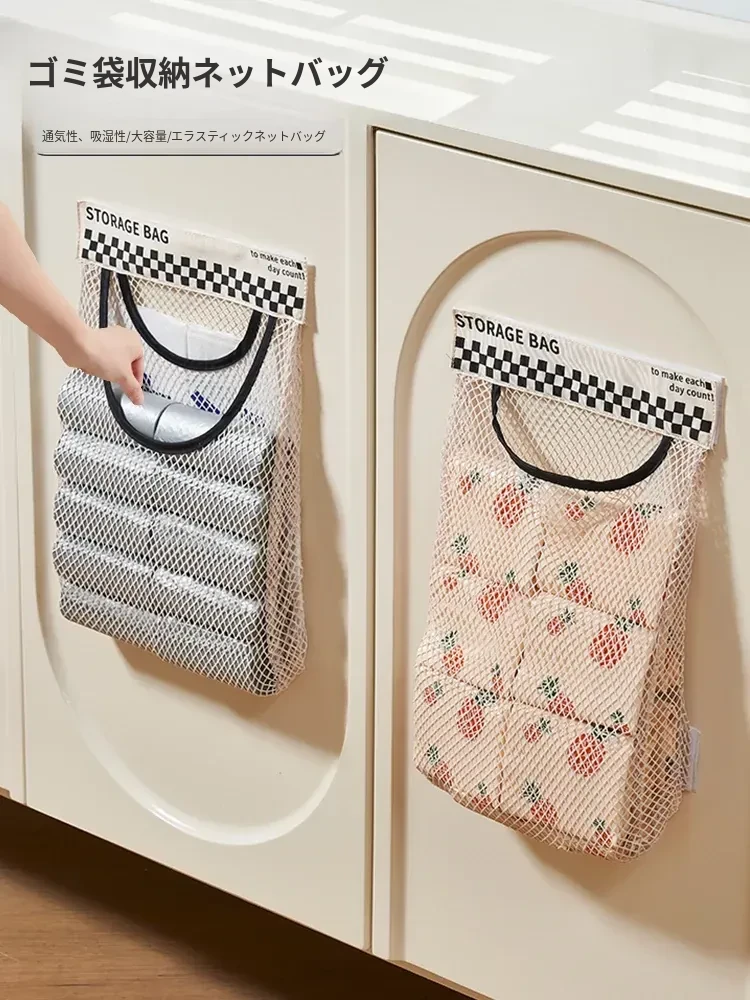 キッチンの必需品!壁掛け式ゴミ袋収納便利グッズ - 大容量プラスチック袋ネット収納ボックスで食品袋もスッキリ整理!収納力抜群で、スペースを有効活用!