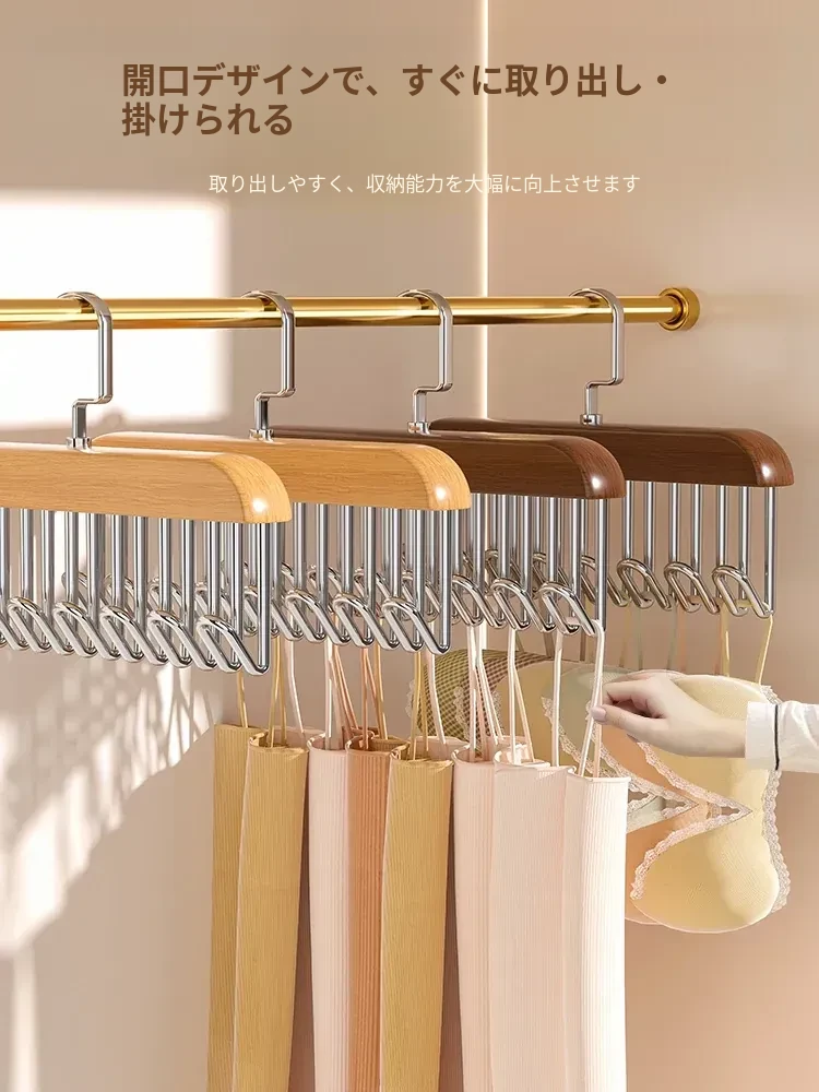 天然木製の波形フック付きハンガー - 便利な多機能デザインで、シャツやインナーをスタイリッシュに収納!学生の寮や家庭にぴったりの実用的なアイテムです。