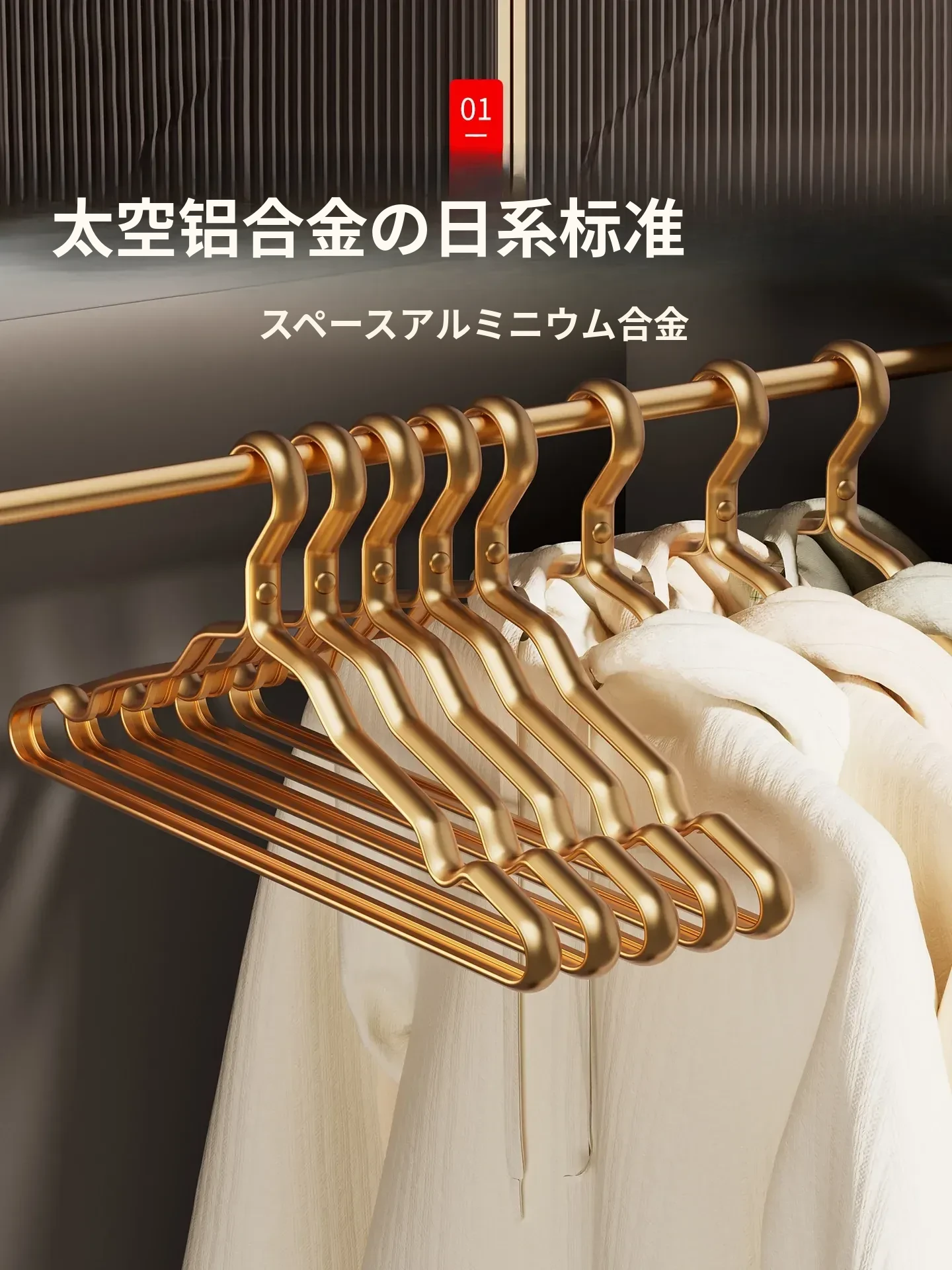 100本セットの宇宙アルミ合金ハンガー - 家庭用の無痕で肩のラインを守る高級軽量衣類ハンガー、エレガントなゴールド仕上げ!