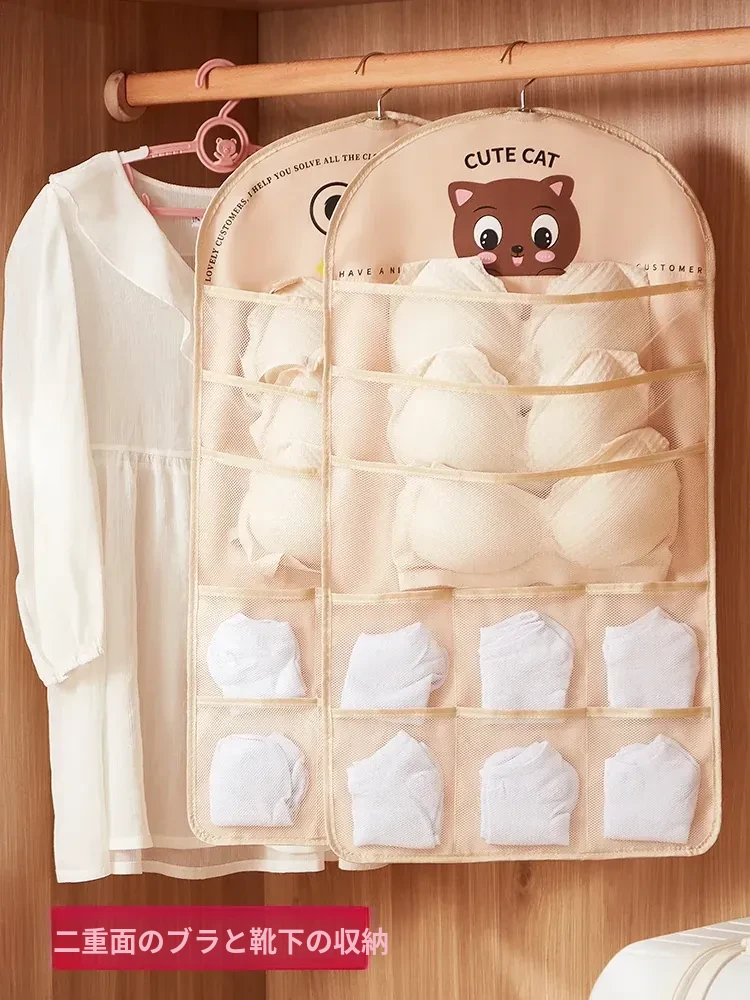 収納力抜群!両面使える内衣・下着用ハンギング収納袋 - クローゼットにぴったりな壁掛け整理ラックで、ブラやパンツをすっきり整理しよう!あなたの毎日をもっと便利にする収納マジック!