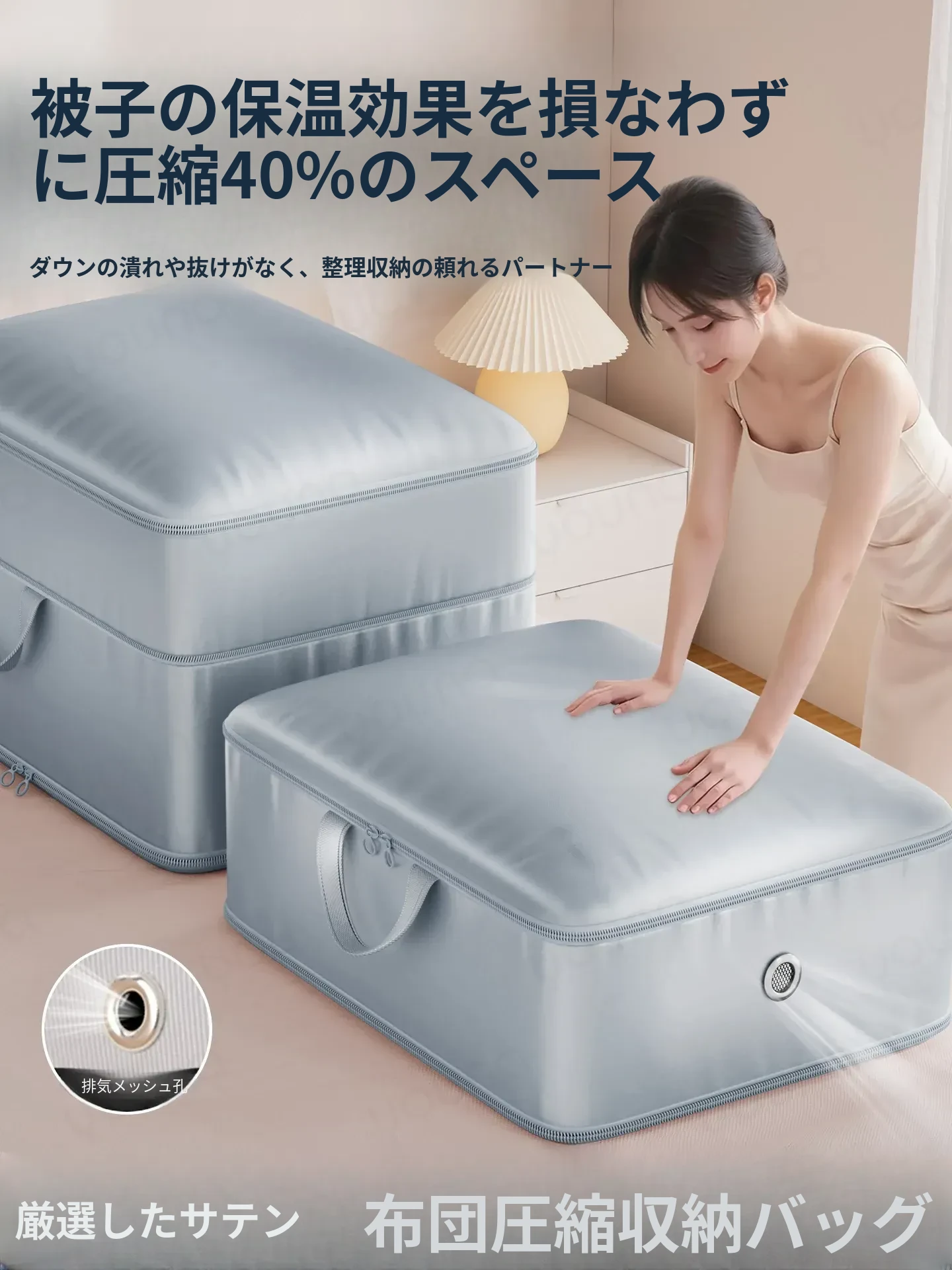 ダウンジャケットや衣類をスッキリ収納!大容量圧縮バッグ - ふとんや羽毛布団専用整理袋で、すっきりとしたクローゼットを実現!収納のプロが選ぶ、便利でおしゃれなアイテムです。